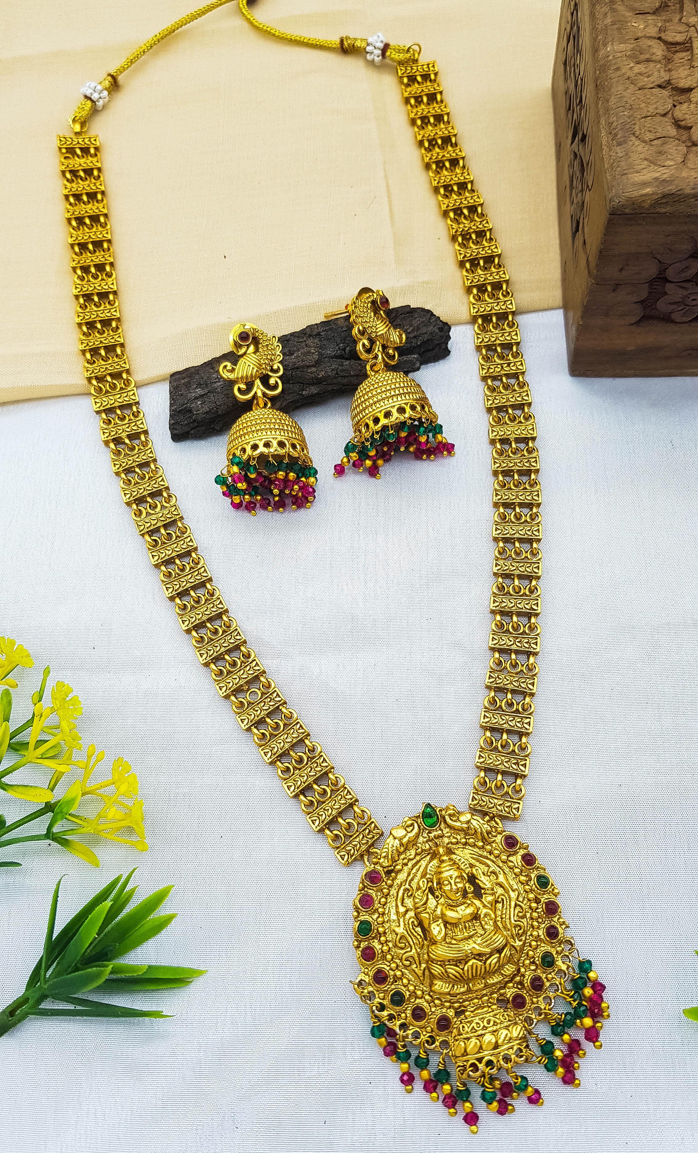 Elevate any outfit with our stunning Gold Finish Designer Long Necklace Set! This sleek and stylish set features a beautiful gold finish that is sure to catch the eye. Perfect for any occasion, it will add a touch of elegance and sophistication to your look. Stand out and shine with this must-have accessory!