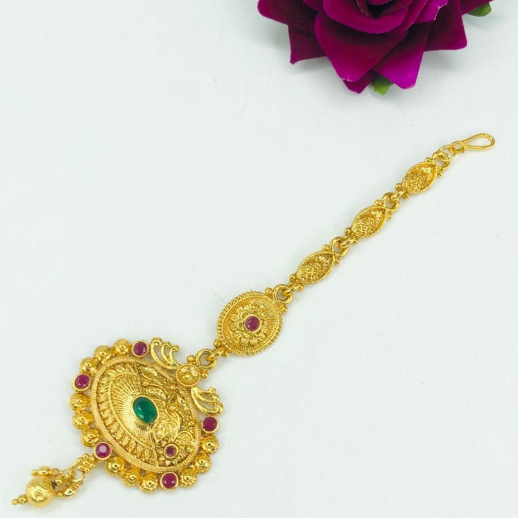 Gold Finish Hair Accessory Damini/Tikka Bridal Wear 10797N