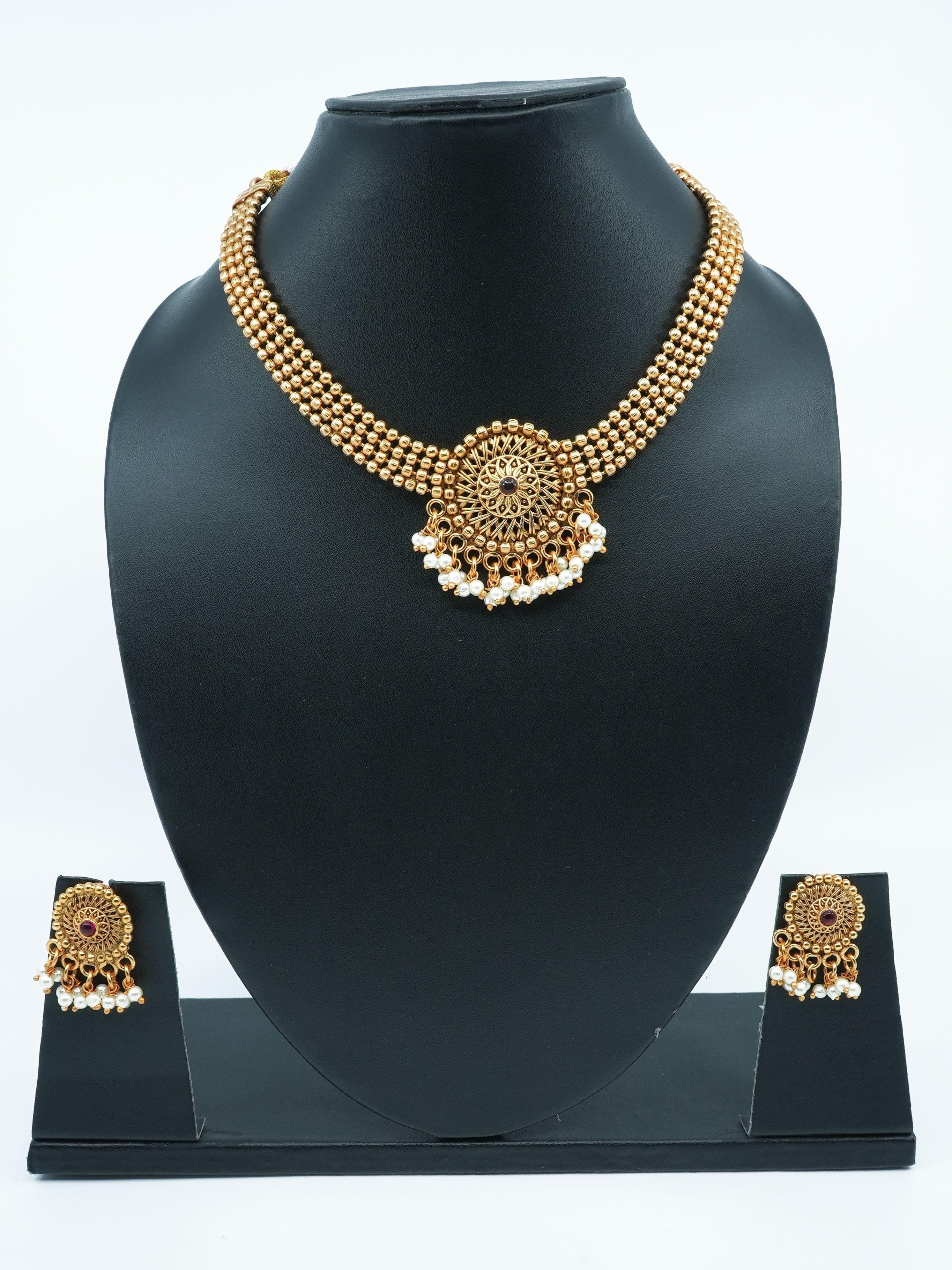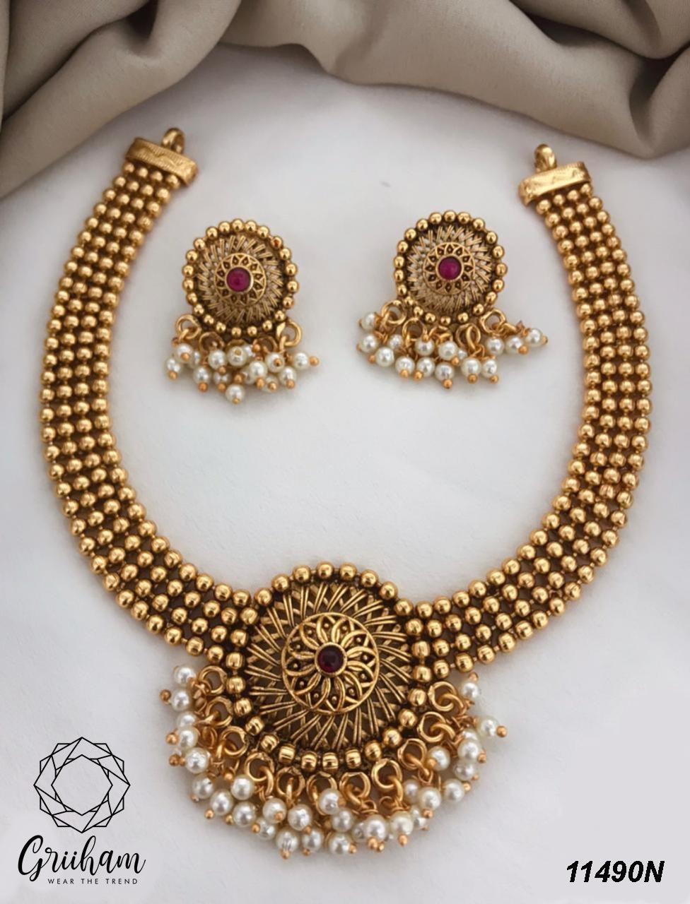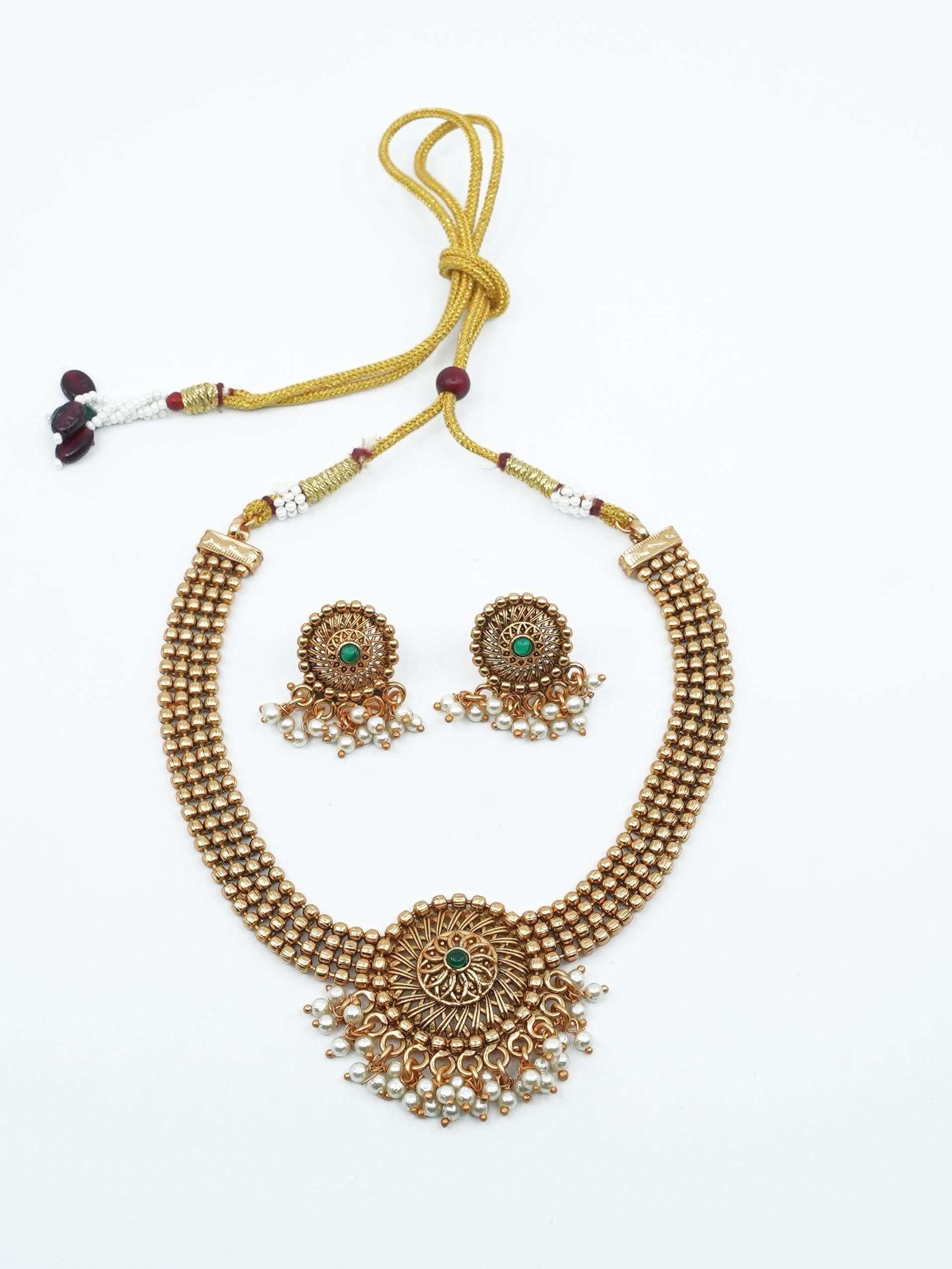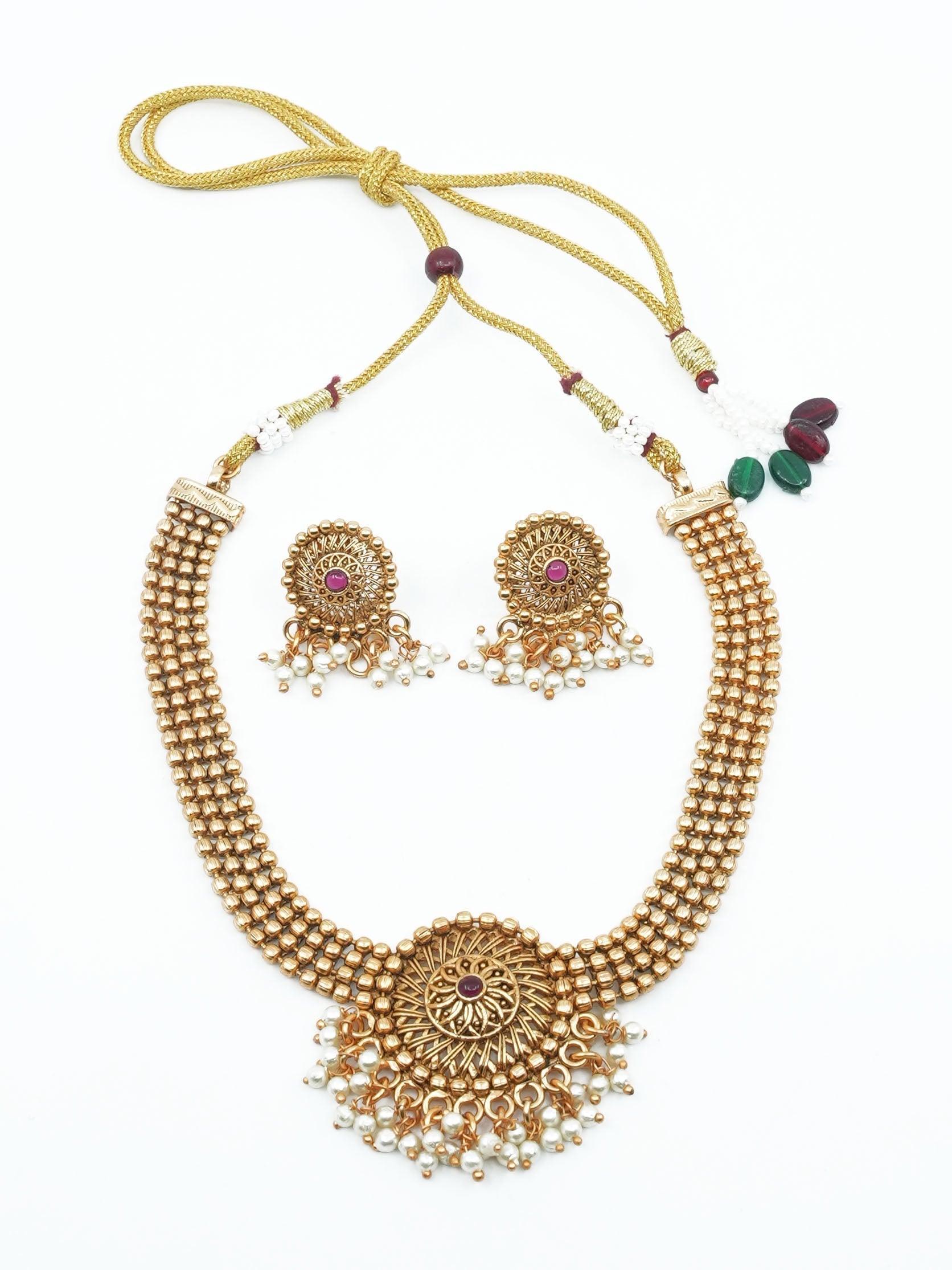Gold Plated Elegant Necklace Set with kempu stones 11490N