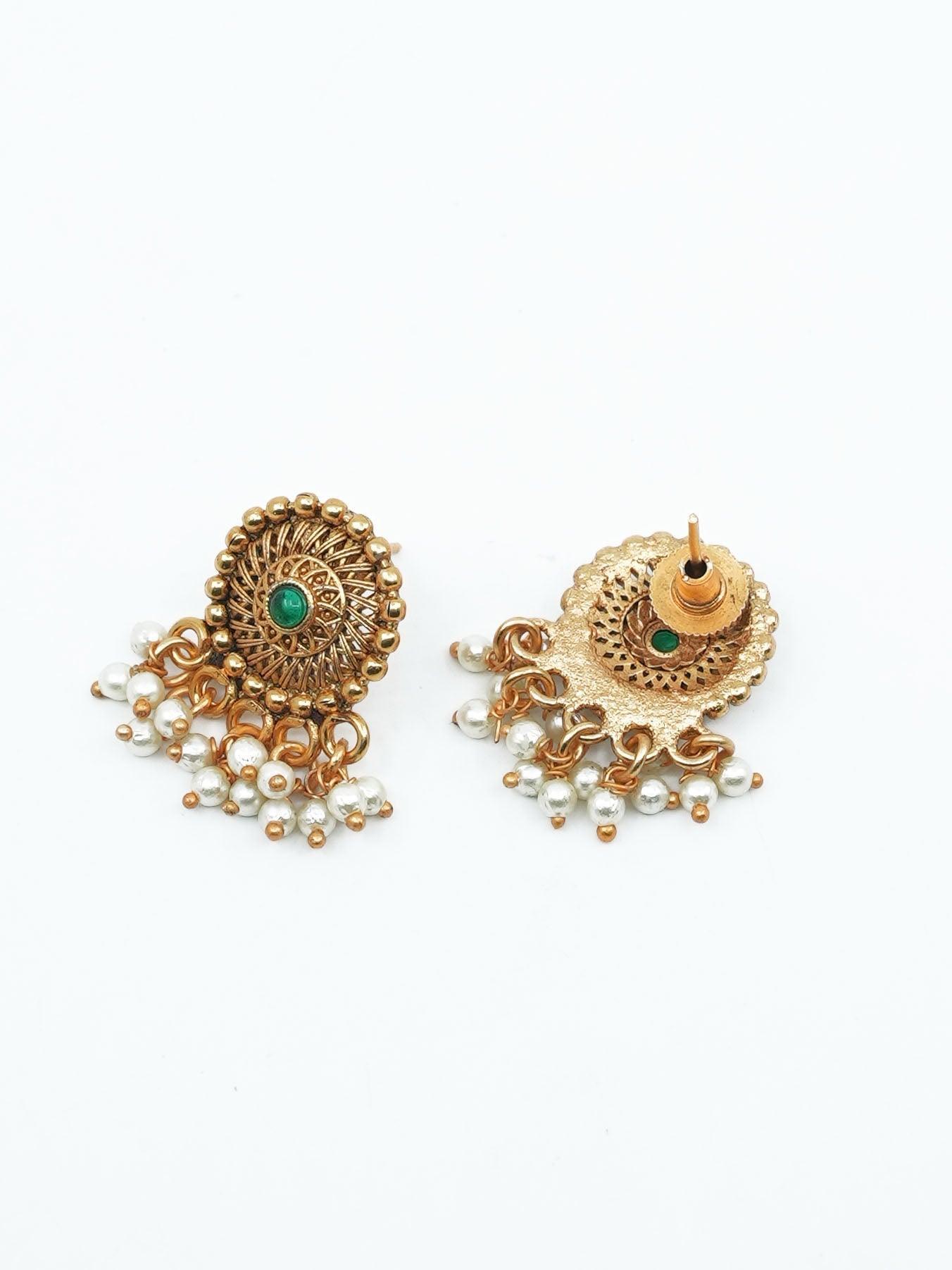 Treat yourself to some royal bling with this stunning gold-plated necklace set featuring glimmering kempu stones. Add a touch of elegance to any outfit - dress it up or down, you'll sparkle no matter the occasion!