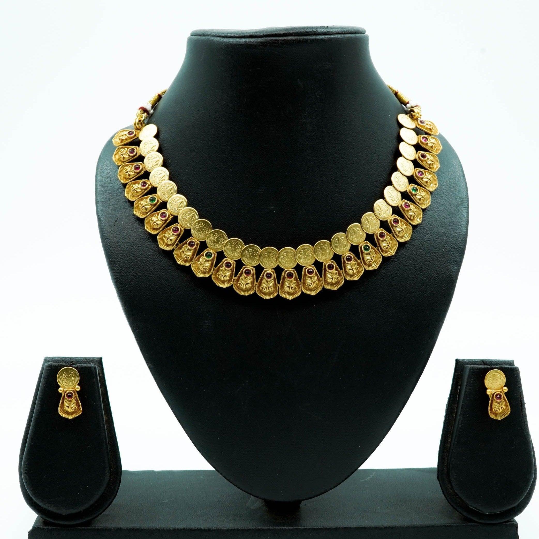 Gold Plated Classic Laxmi Kasu Necklace set 8977N