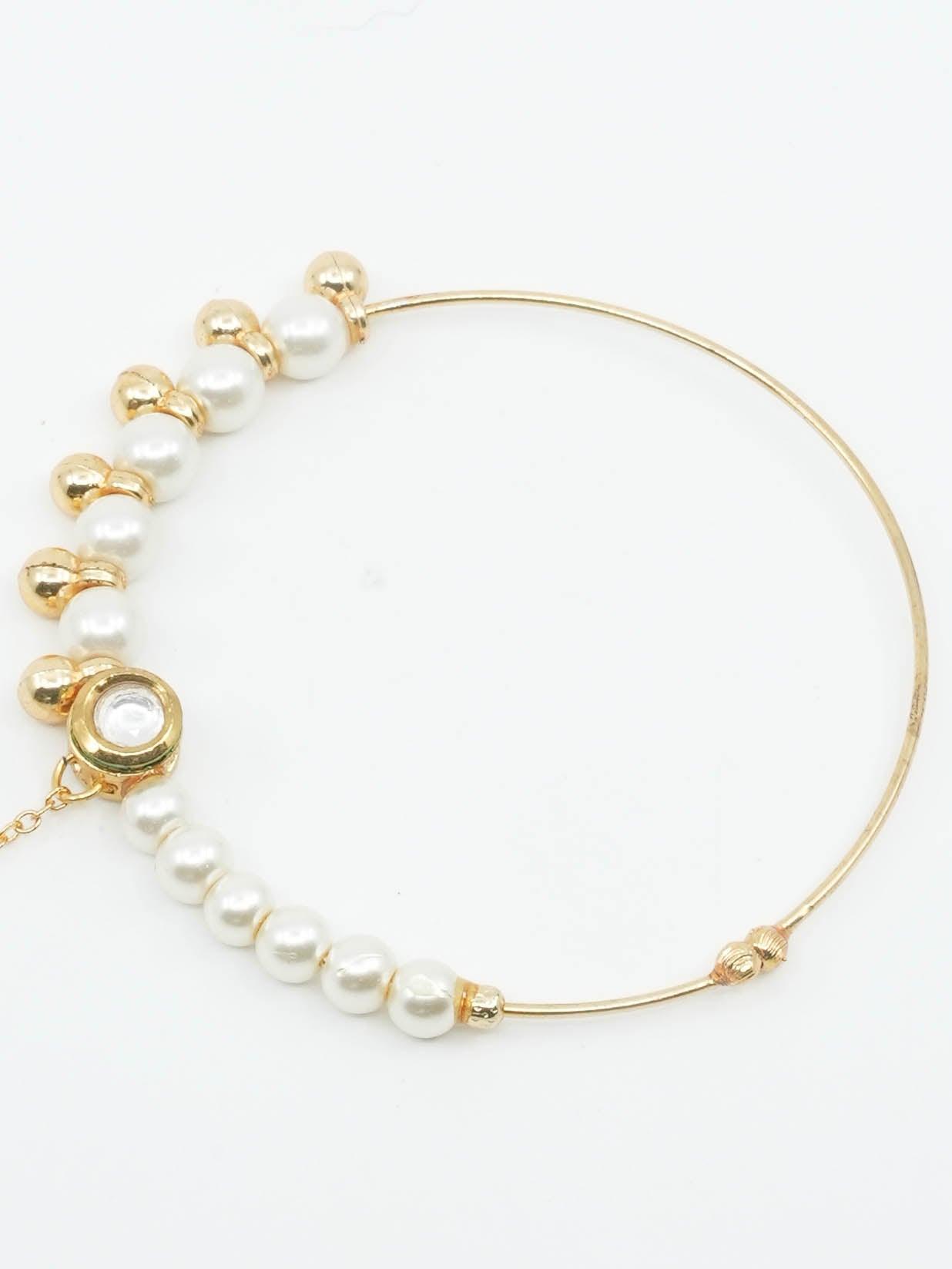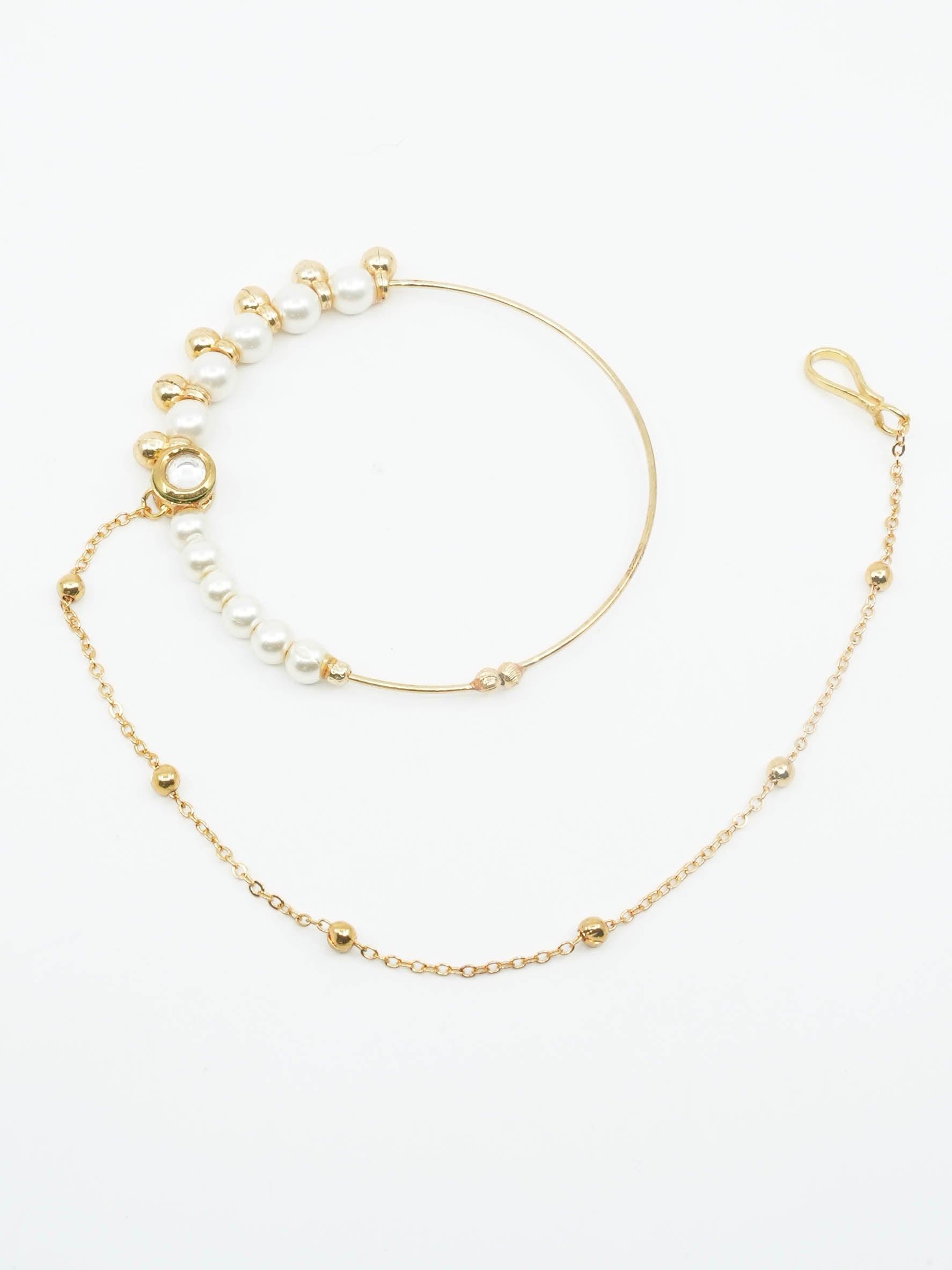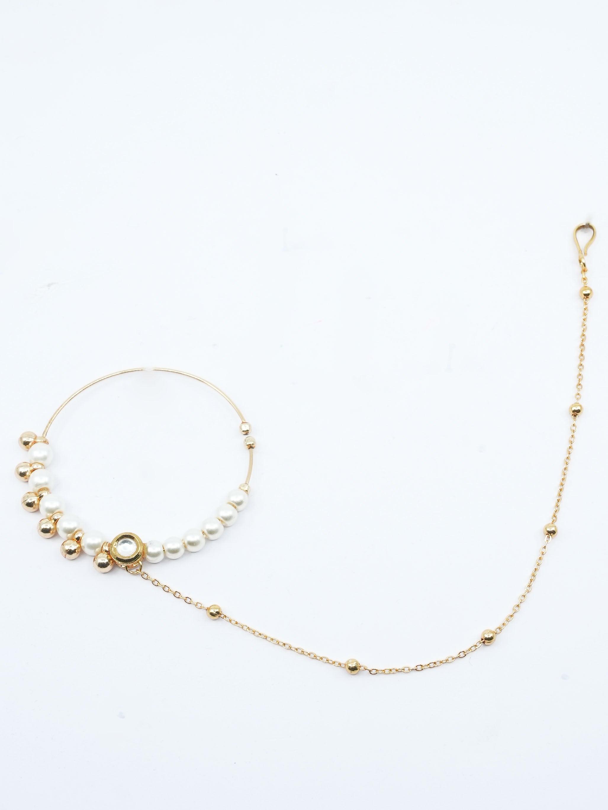 Elevate your look with our exquisite Gold Plated Nosepin / Nath. Adorned with a delicate pearl hanging, it exudes elegance and charm. Perfect for any occasion, this nosepin will add a touch of sophistication to your style. Make a statement and indulge in luxurious beauty with our  design.