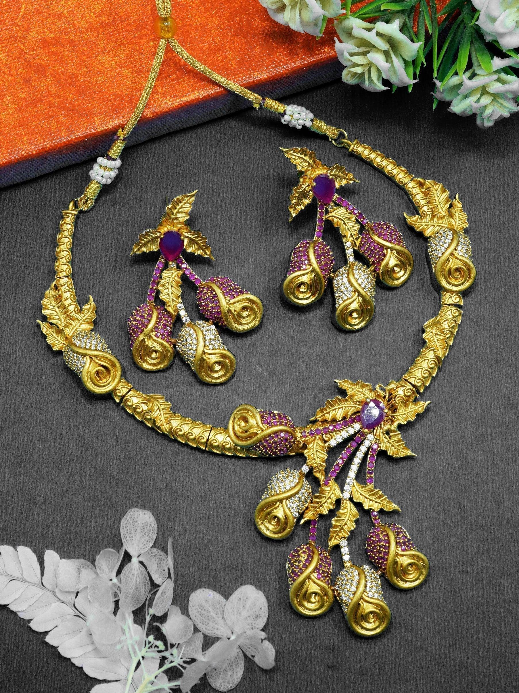 Rose design designer Necklace with pearls antique Necklace 9939N