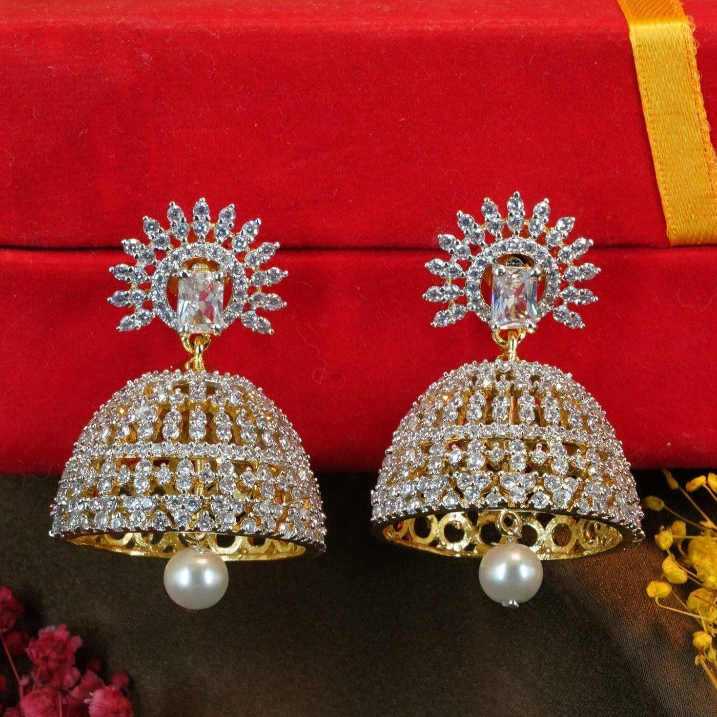 Premium Gold Polish Sayara Collection CZ Studded Jhumki 11612N