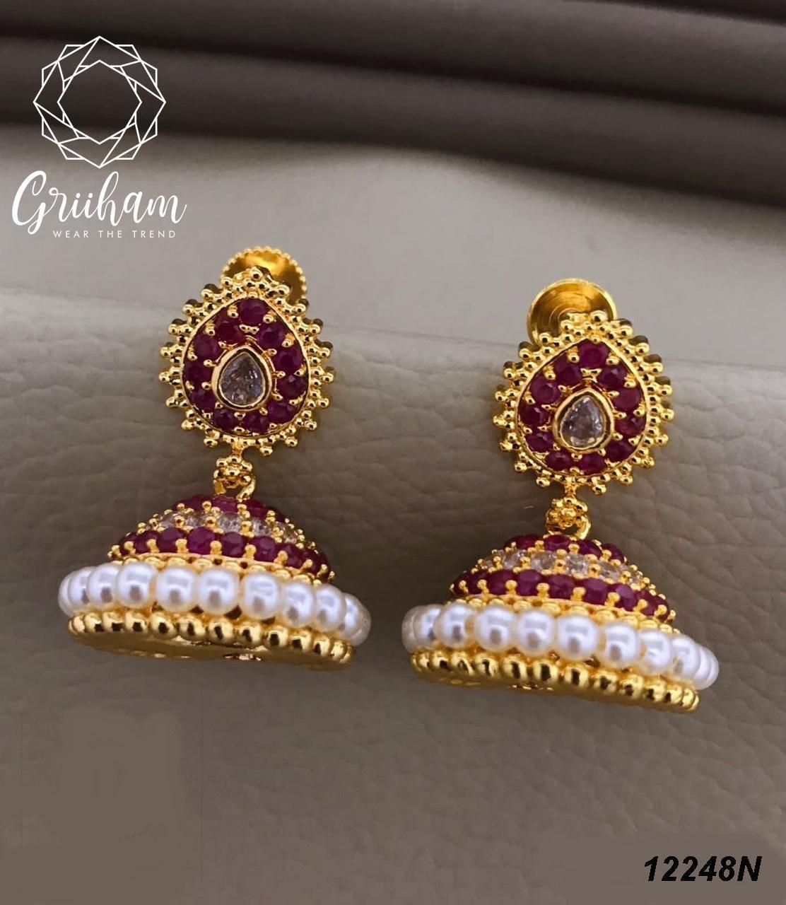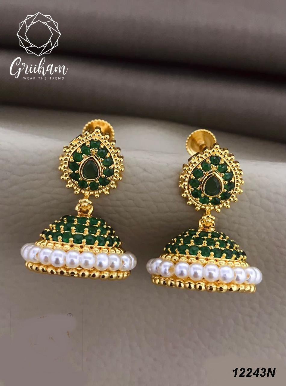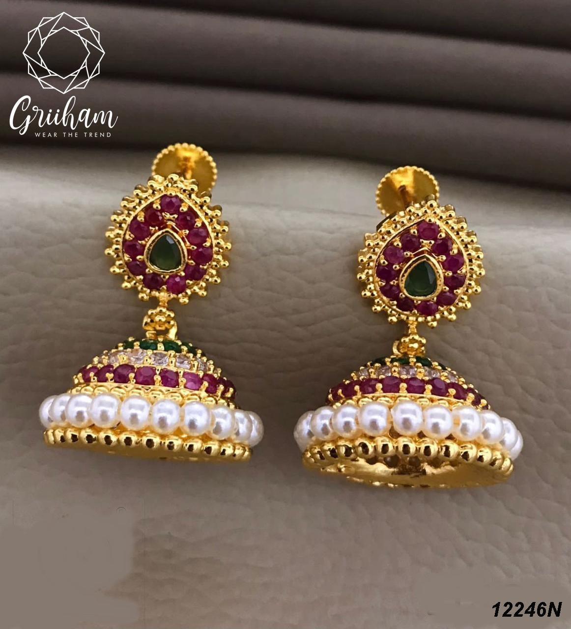 Premium High Gold Plated Earring/ Jhumka with south india screw12244N
