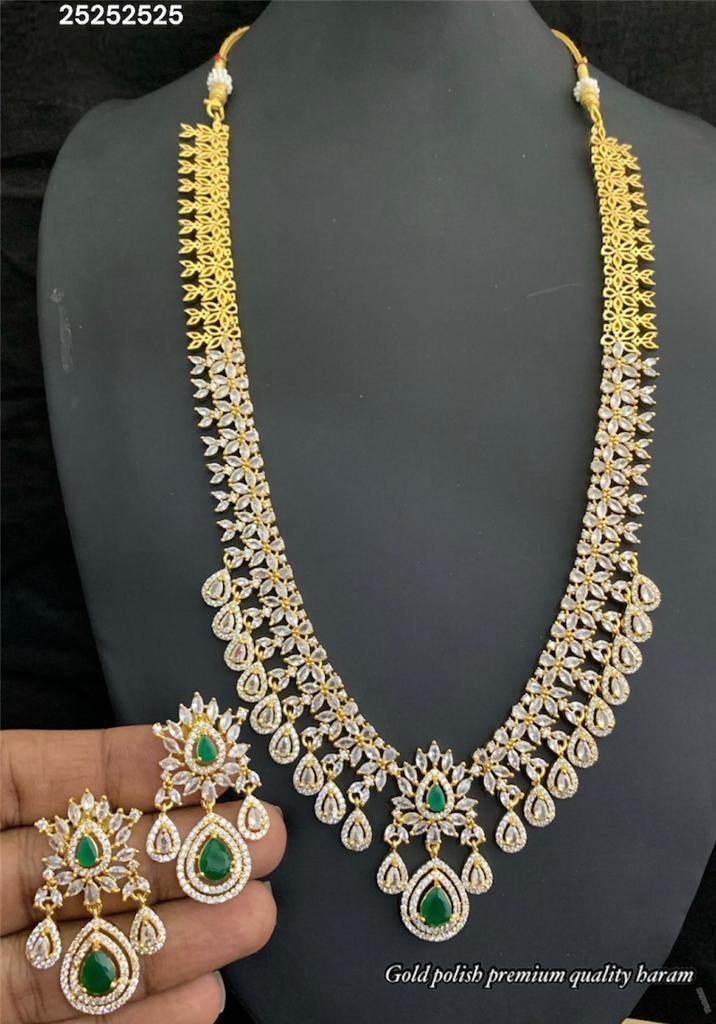 Elegant premium LONG NECKLACE SET/LONG HARA full zercon stones in gold finish 13778N