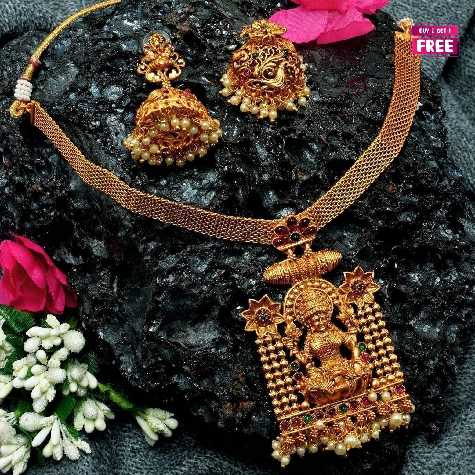 Premium Gold Finish Reversible Pendant Set with AD Stones - Griiham