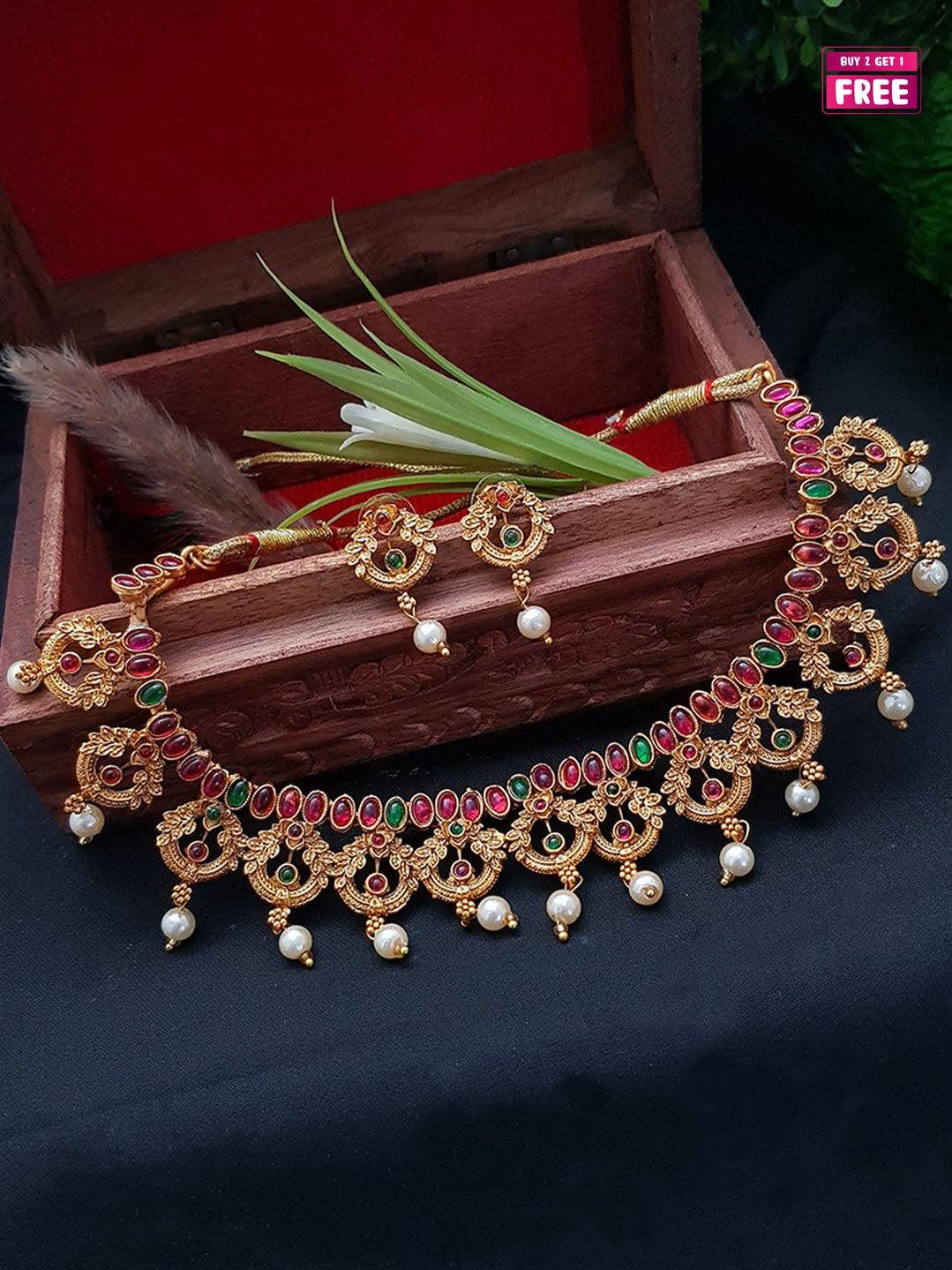 Gold Plated Choker Necklace Set multicolor - Griiham Gold Plated Choker Necklace Set multicolor - Griiham