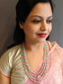 Four Line Turqoise Natural Stone with Baby Pink Oval Stone Mala Necklace set