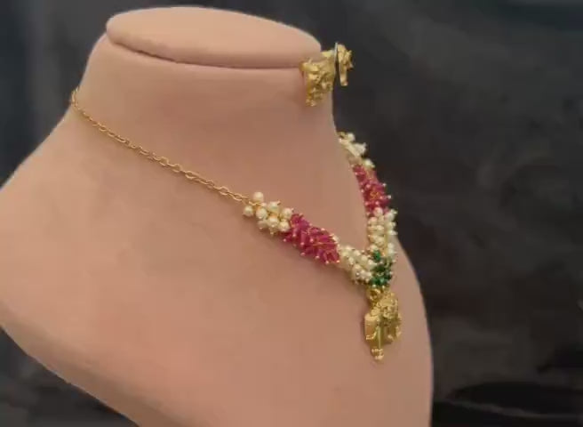 Make a statement with our luxurious Gold Finish Designer elephant Red crystal Necklace Set. The intricate design and red crystal accents exude sophistication and style. Elevate any outfit with this exclusive and elegant piece.