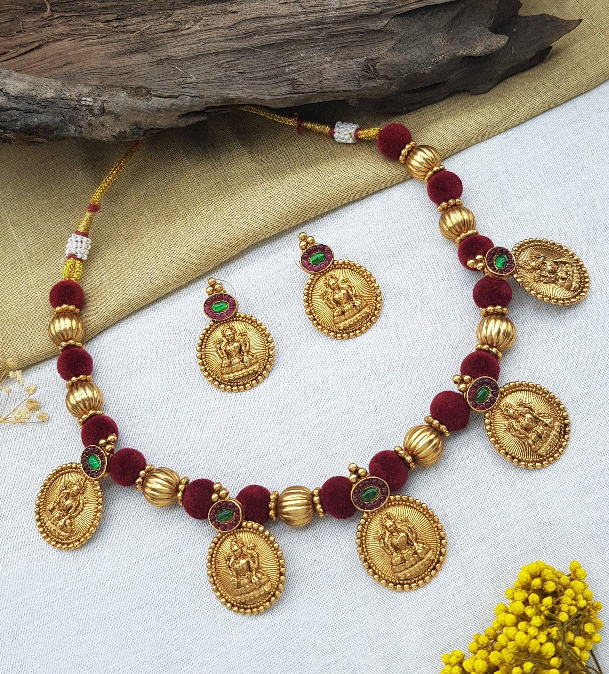 Gold Plated Cute Laxmi Coin Necklace Set 22651N