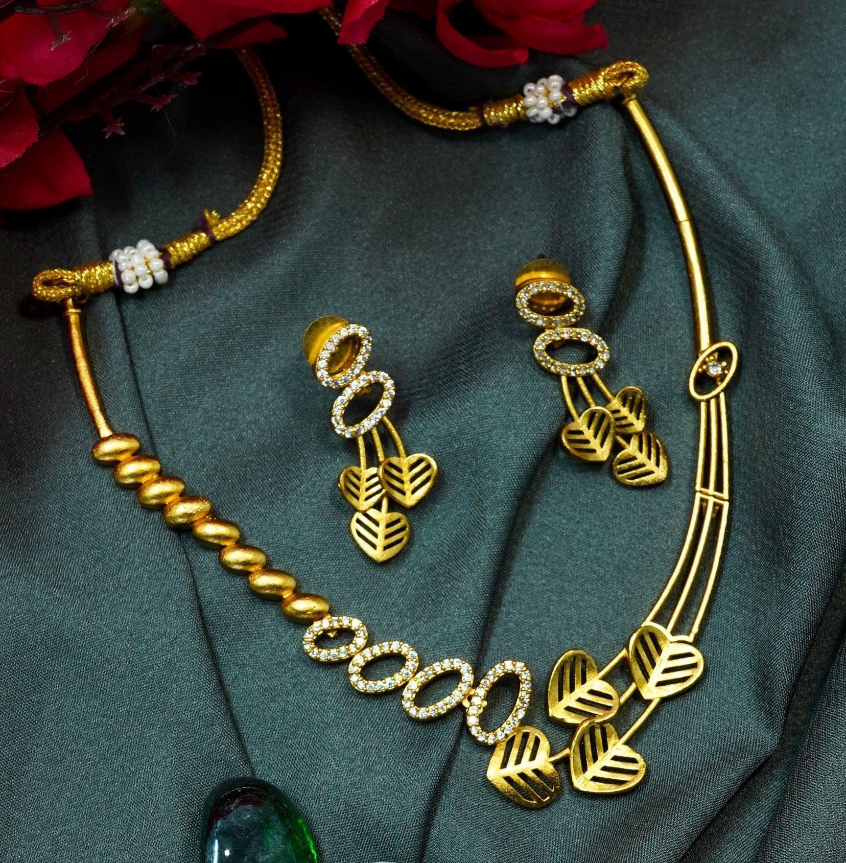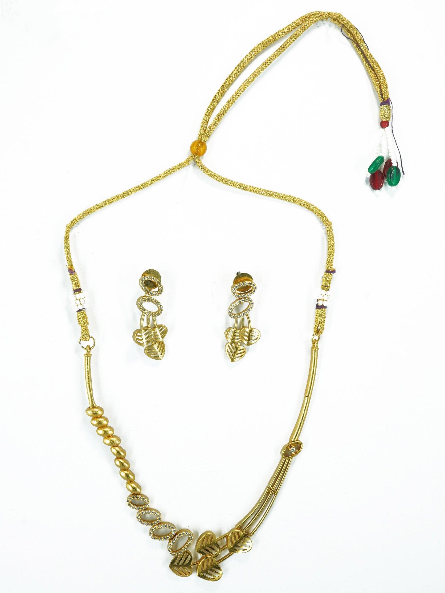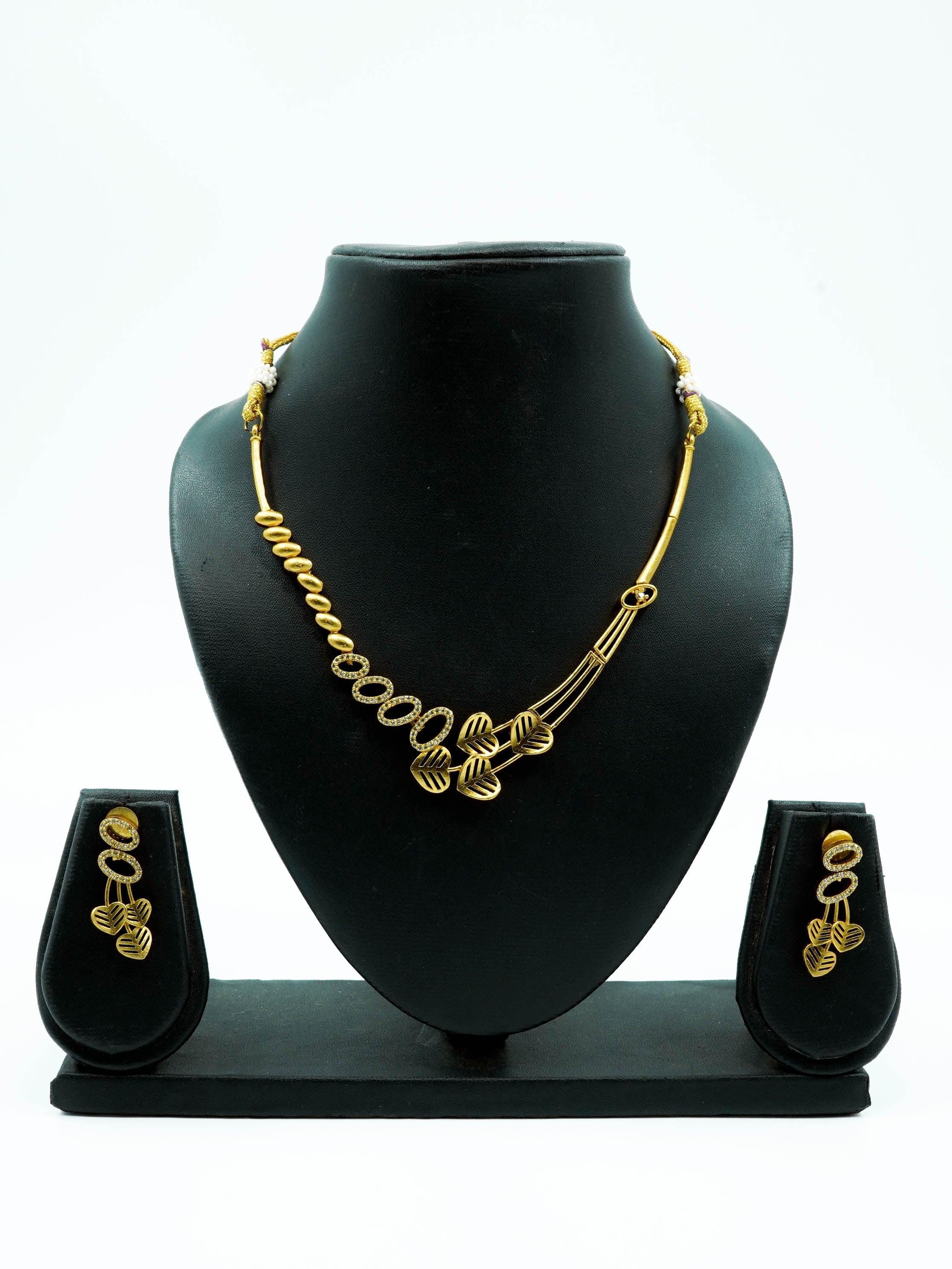 Gold Plated Cute Leaf CZ Necklace set 10372N