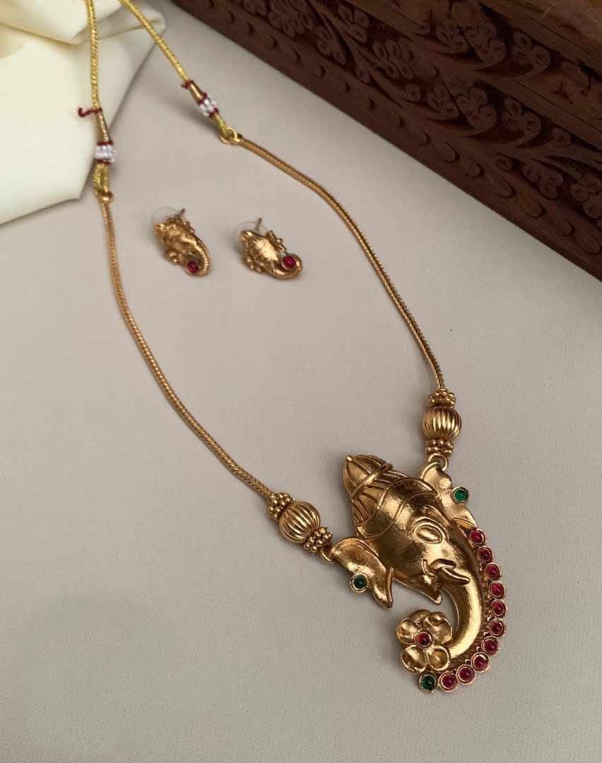 Premium Gold Finish Reversible Pendant Set with AD Stones - Griiham