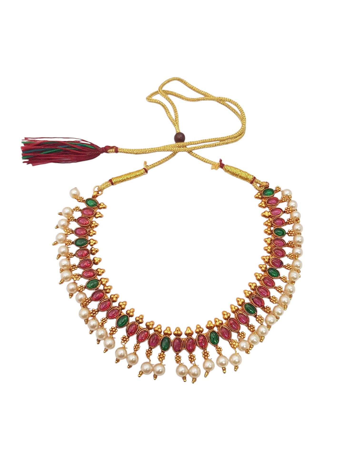 Gold Plated Elegant Necklace Set with Green and Multi Colour