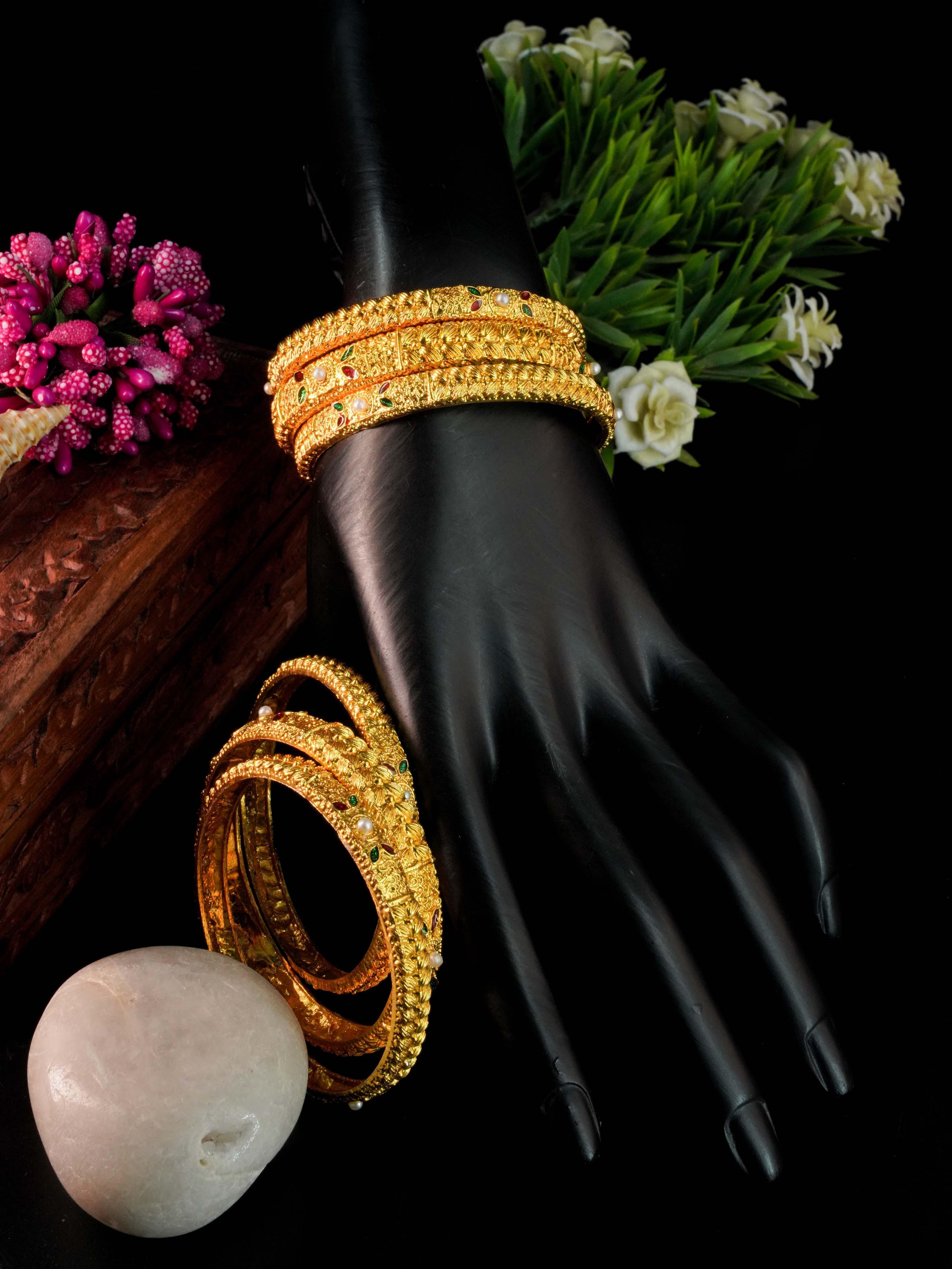 matt Gold Plated great finish Set of 6 bangles with pearl 8802A