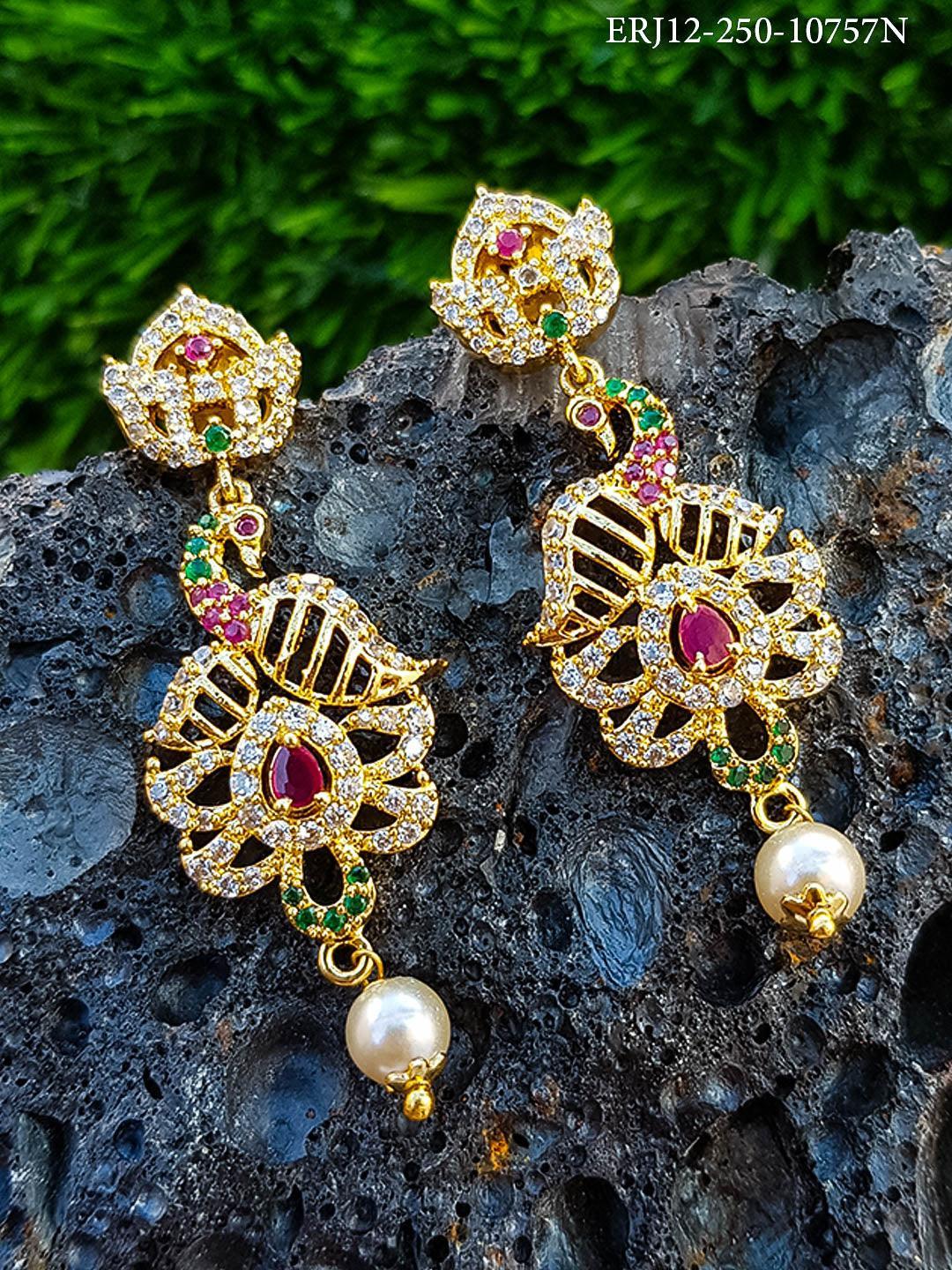 Gold Plated Long Jumkis / Earrings / Hangings with CZ Stones 10757N