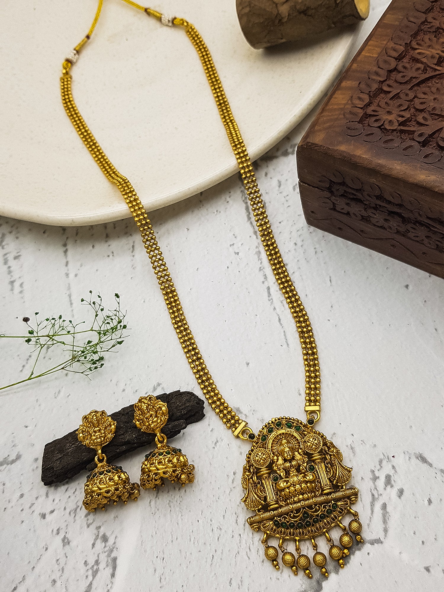 Black bead wati mani pendant Mangalya chain necklace set 18 inches - Griiham