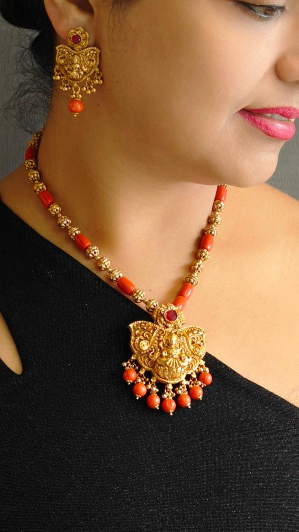 Black bead wati mani pendant Mangalya chain necklace set 18 inches - Griiham