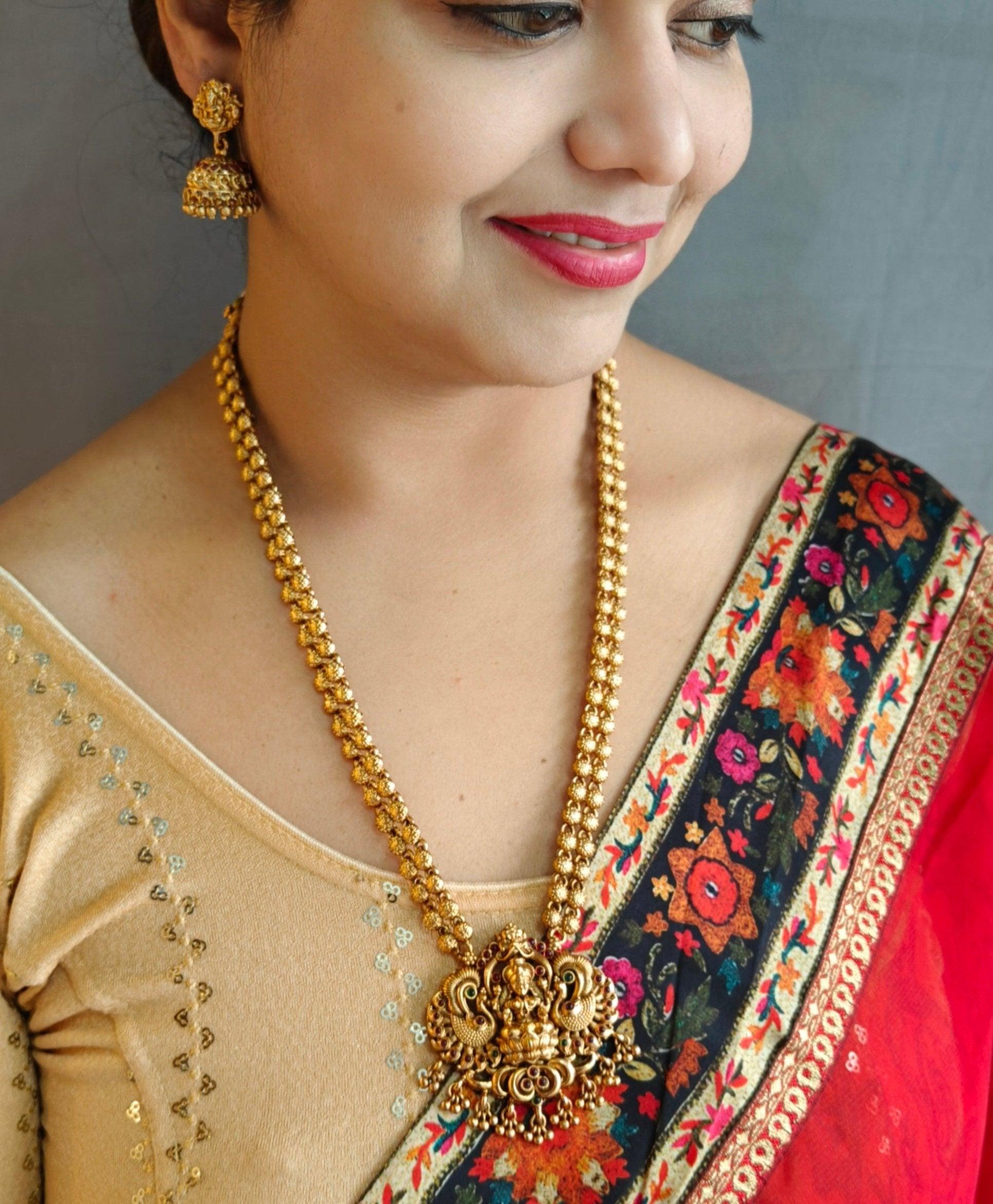 Black bead wati mani pendant Mangalya chain necklace set 18 inches - Griiham