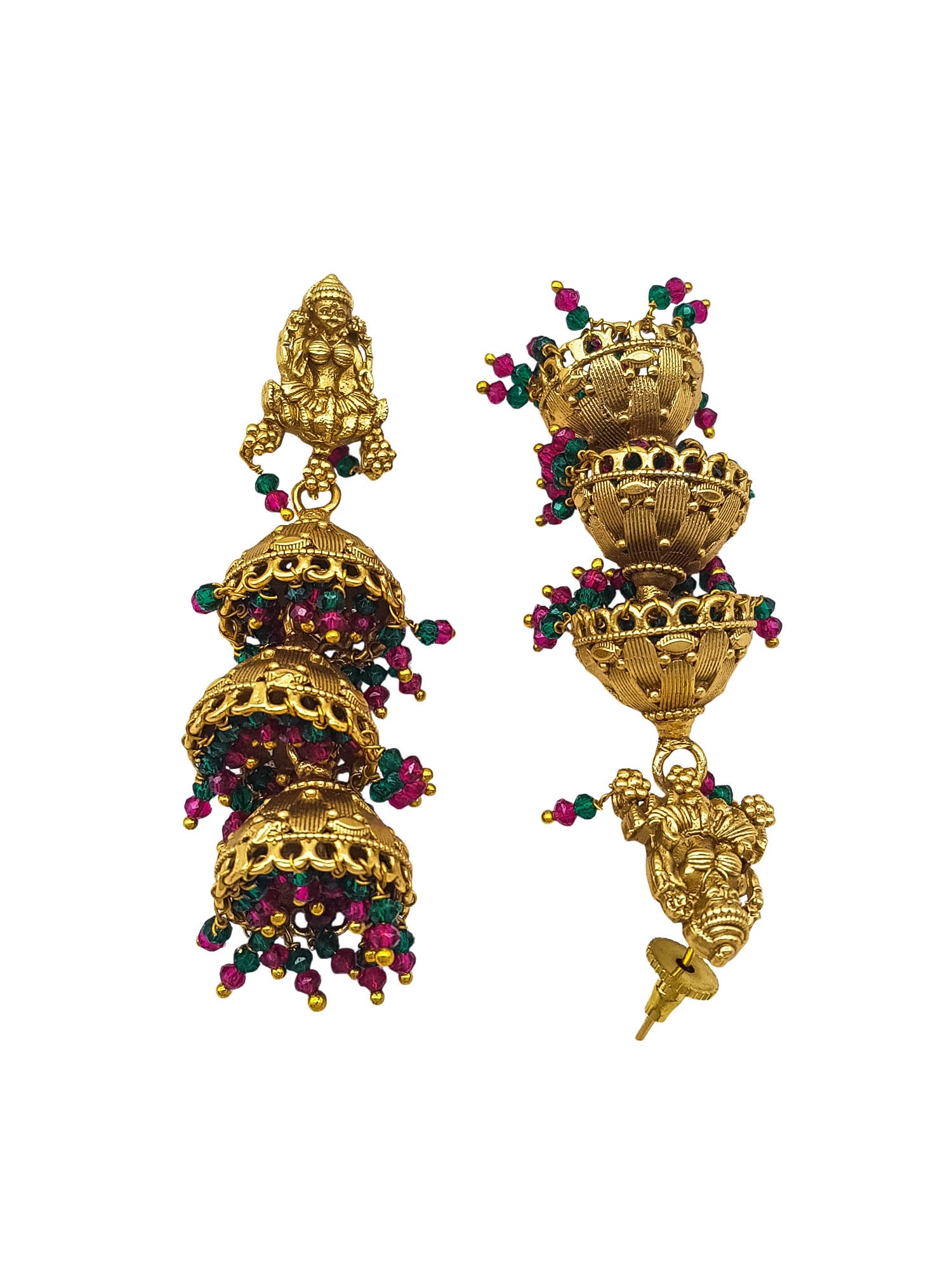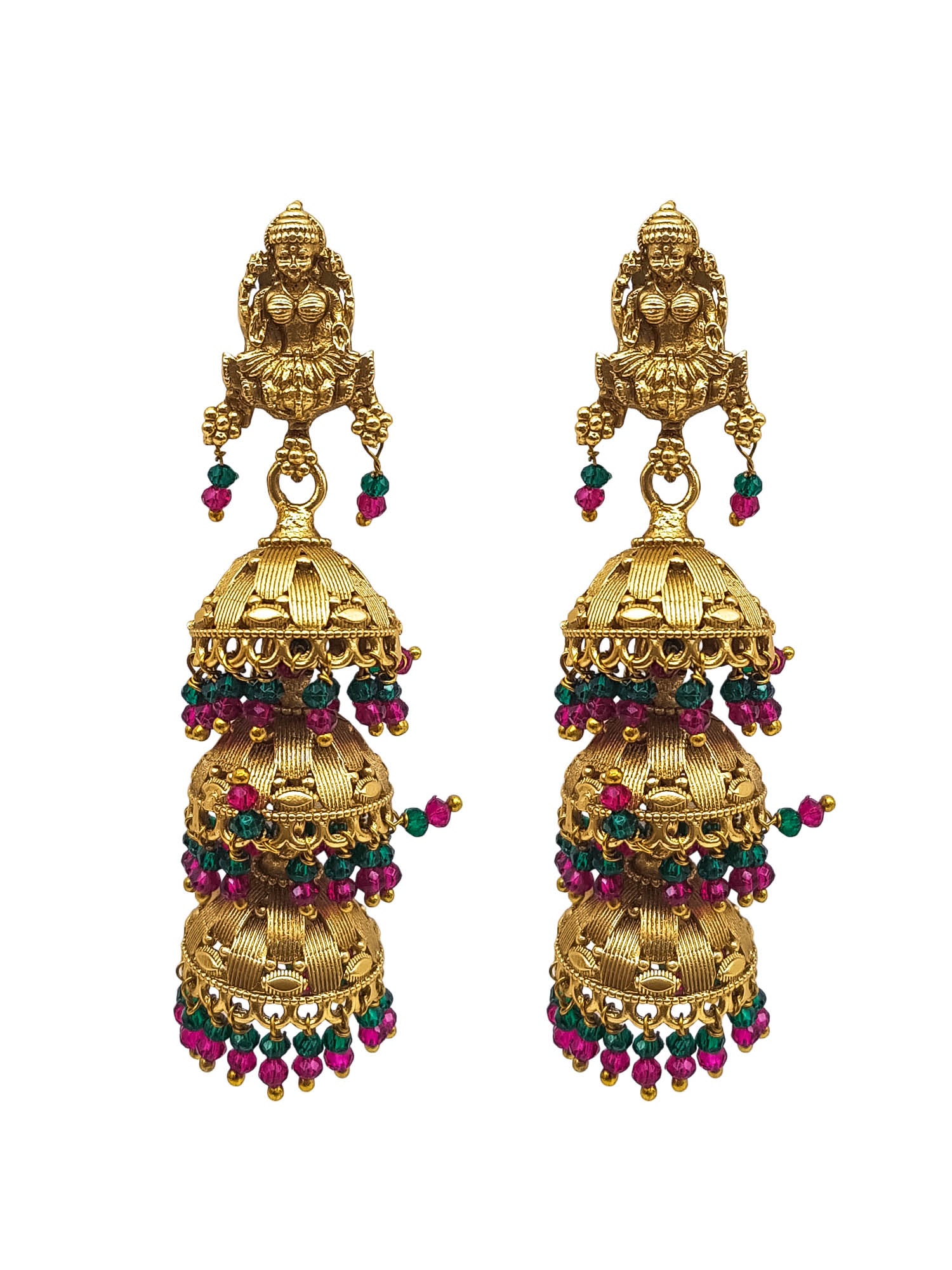 Gold plated Temple design Layered Jhumka Earrings