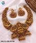 Exquisite and eye-catching, this premium brass-based necklace set features a peacock design with a Lakshmi set. The necklace is a perfect way to make a stunning style statement.