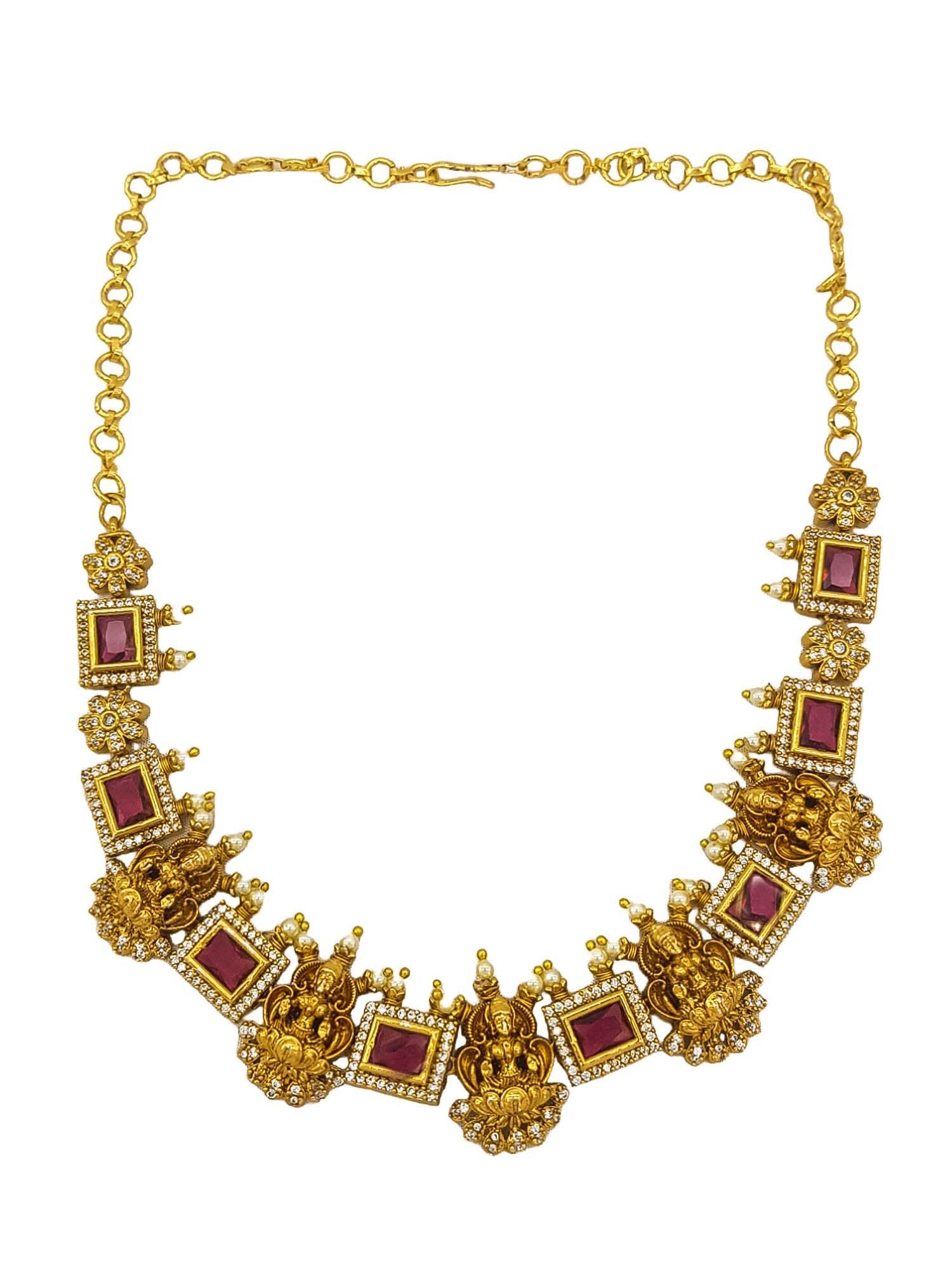 Premium Cz Stone Classic Temple Necklace Set