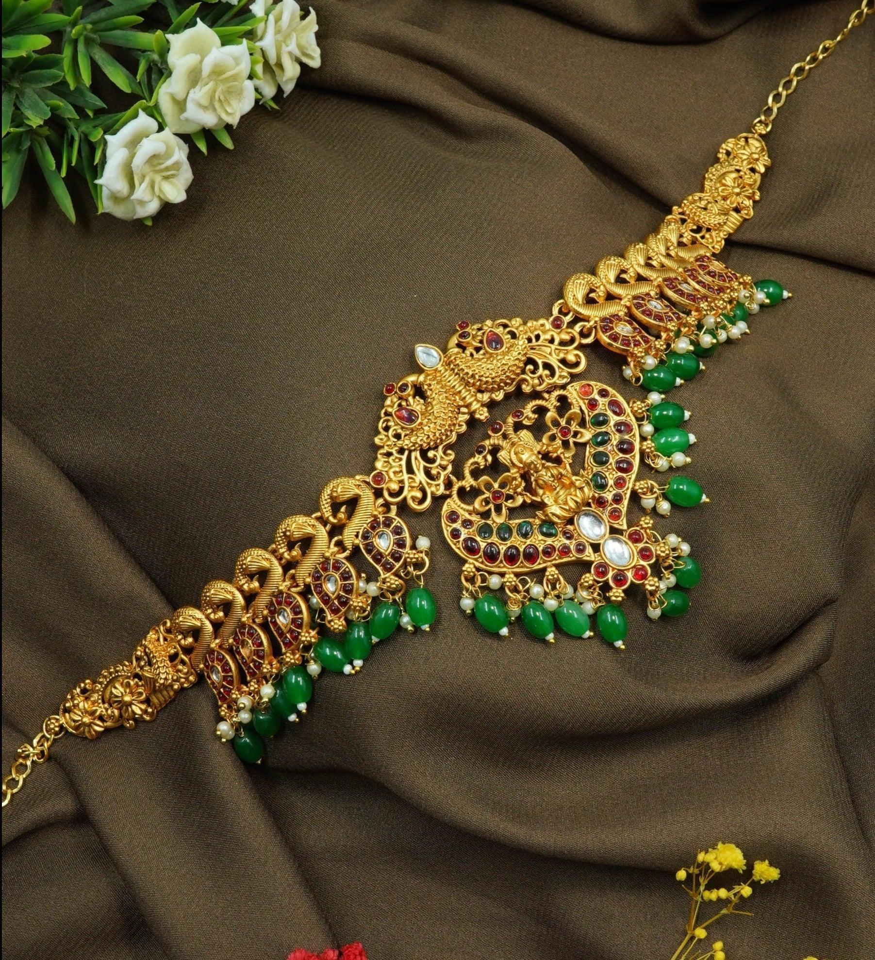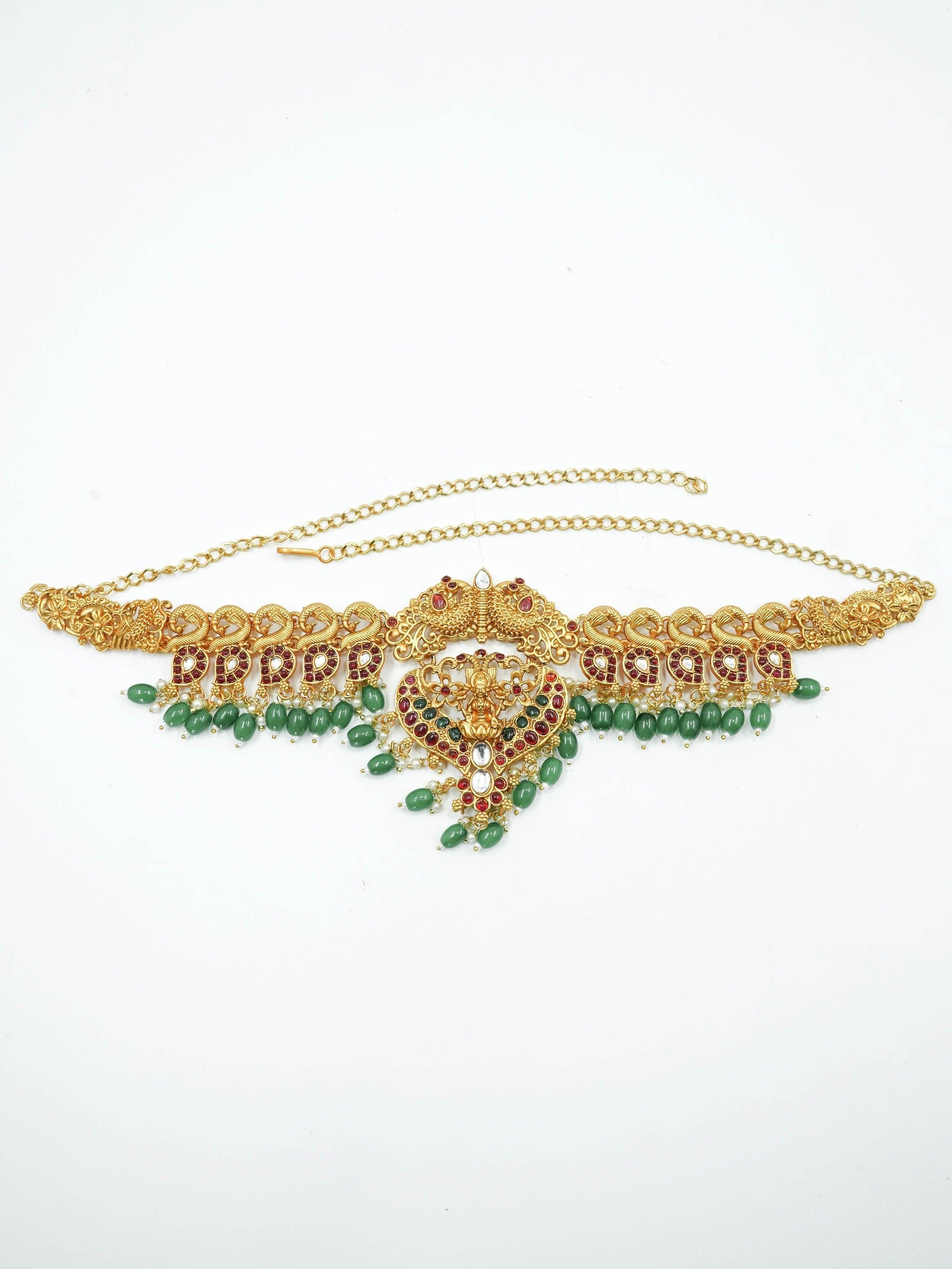Premium Gold finish Free Size Vodiannam / Waist belt / Kamar bandh with Kemp Stones 9899N