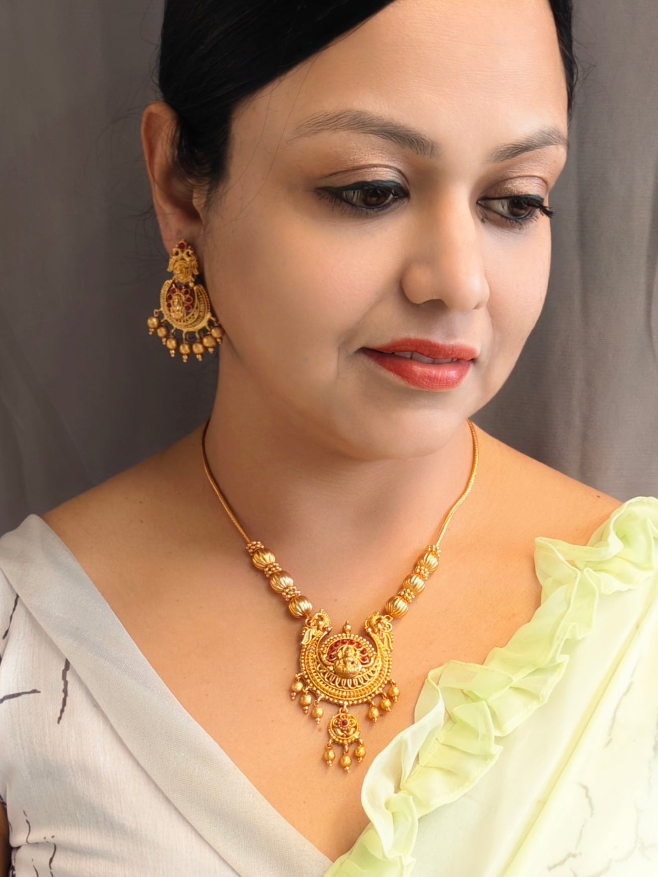 Premium Gold Plated Laxmi pendant set