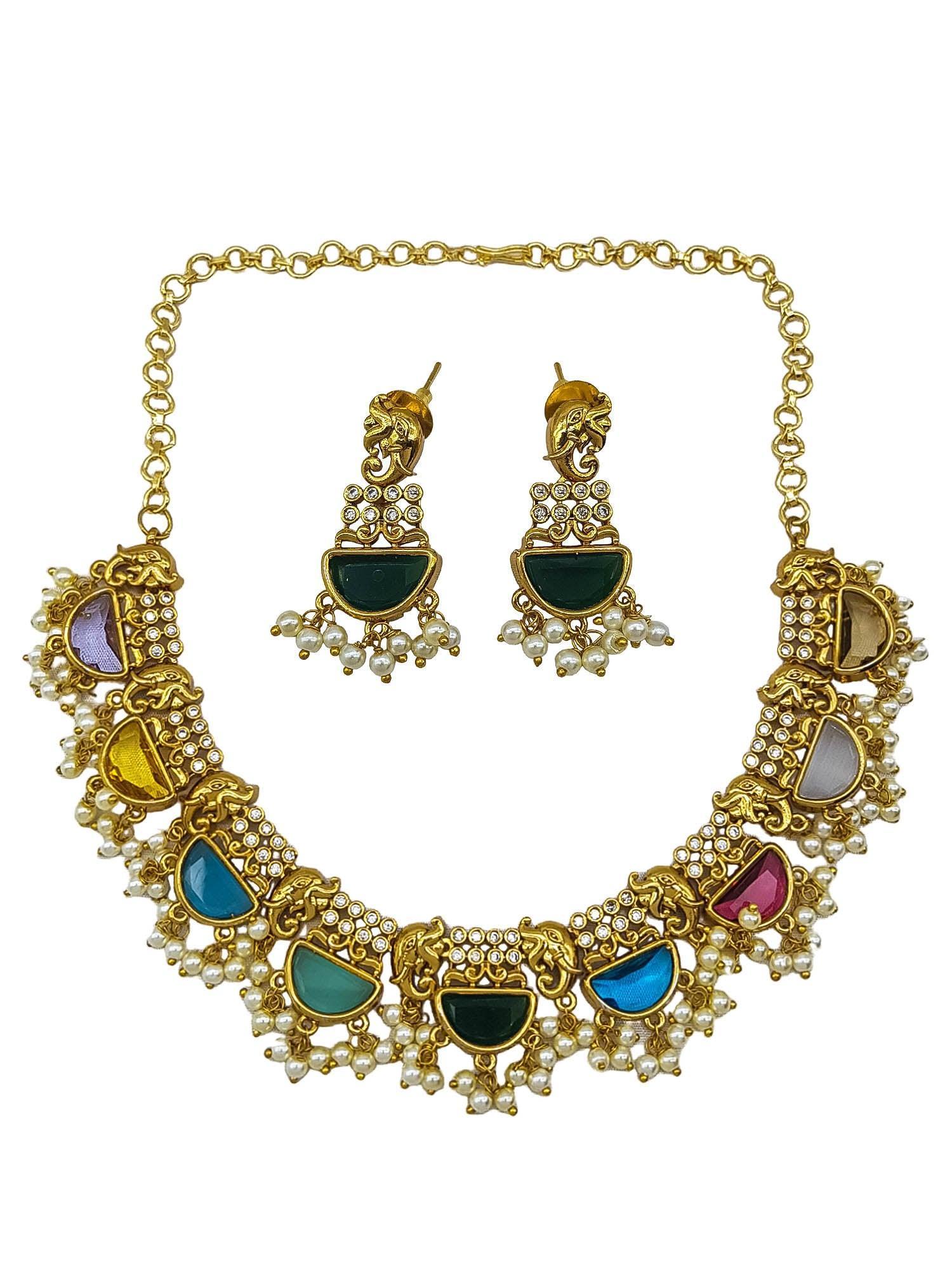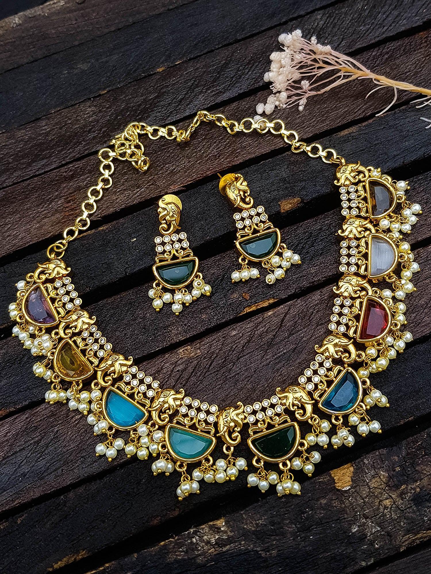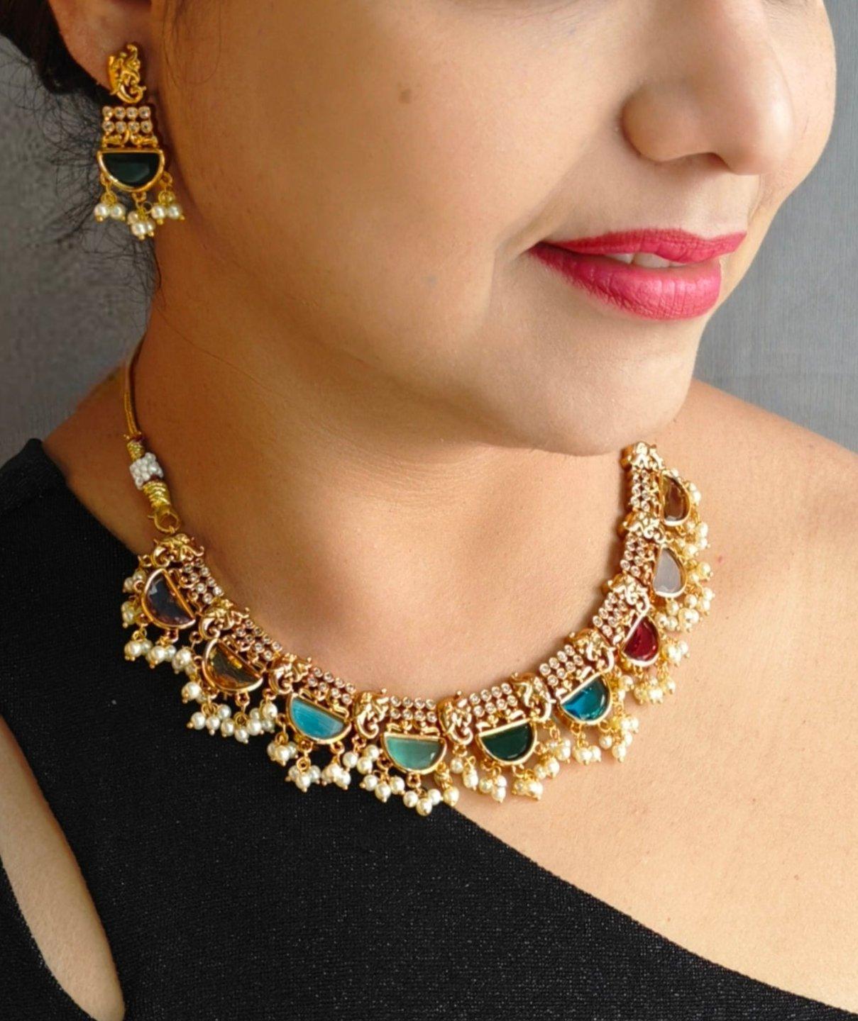 Premium Gold Plated Navaratna Stone Necklace set