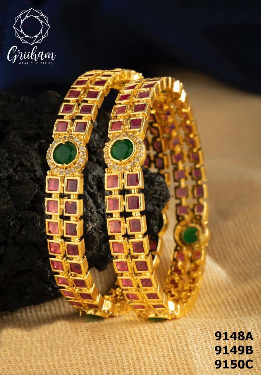 Premium Micro Gold Plated Set of 2 Broad Bangles with Multi Color Stones 9148A
