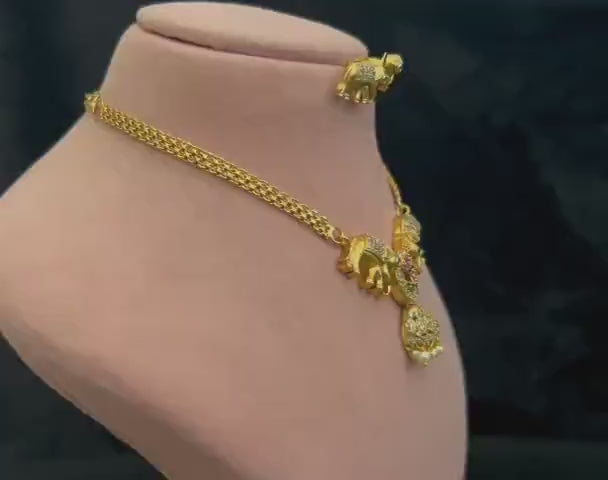 Premium Gold Finish Reversible Pendant Set with AD Stones - Griiham