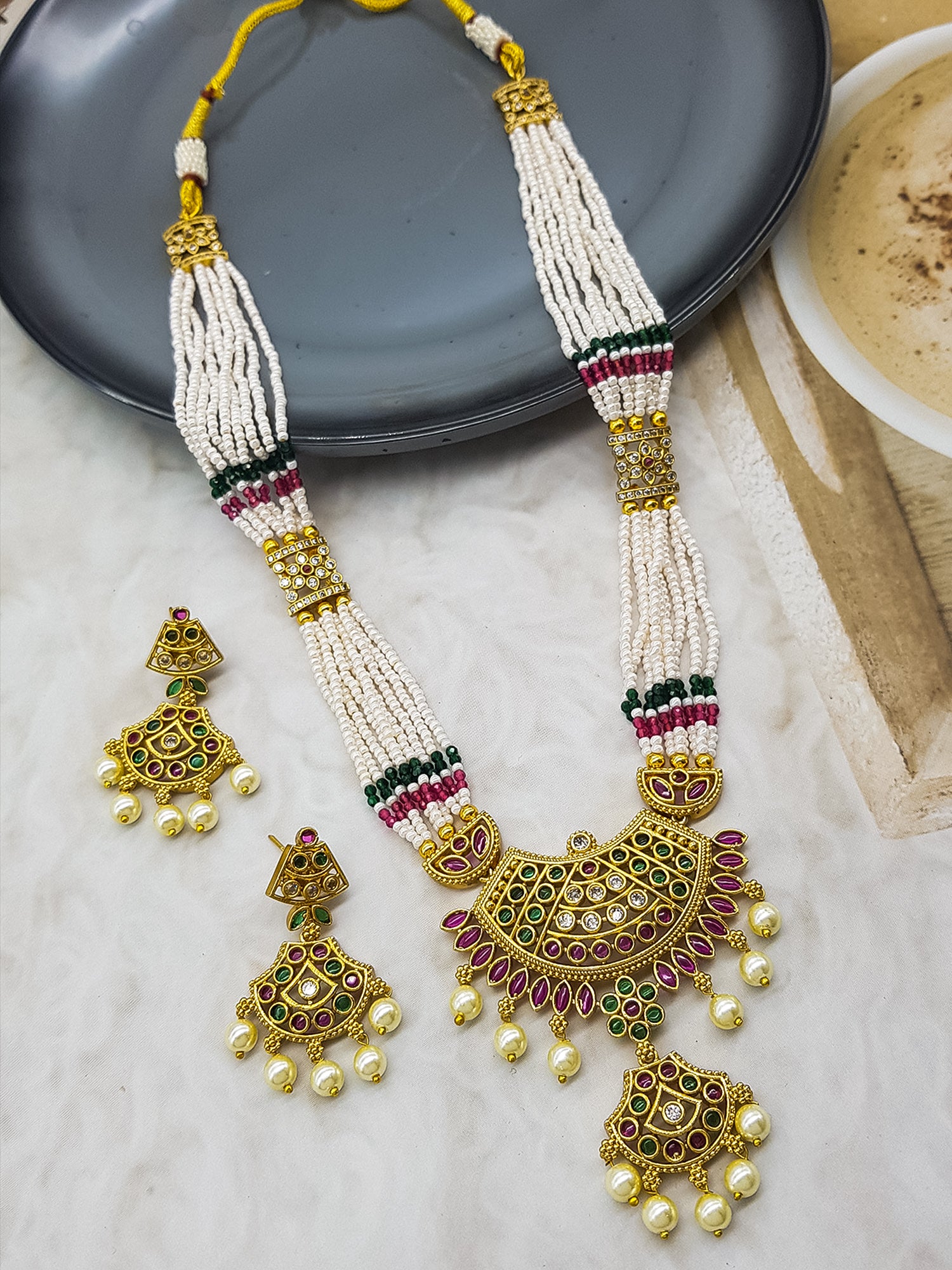 Premium Gold Finish Reversible Pendant Set with AD Stones - Griiham