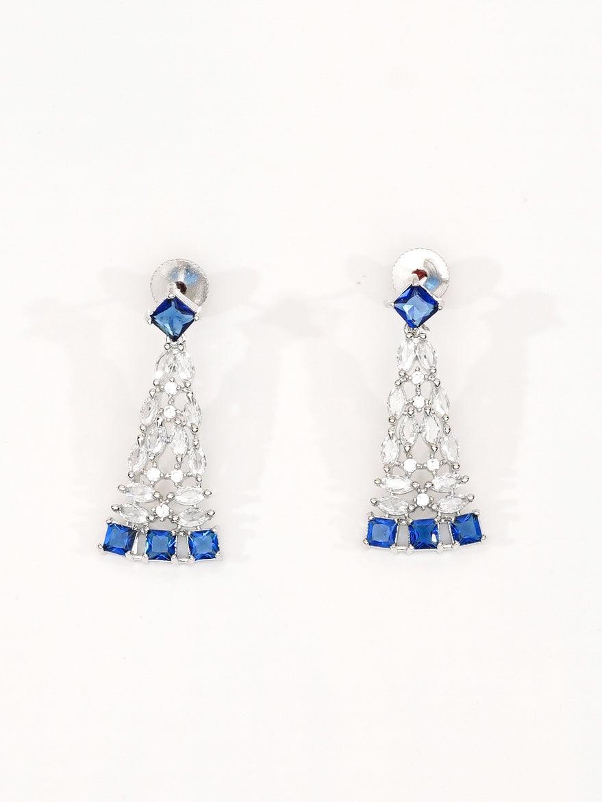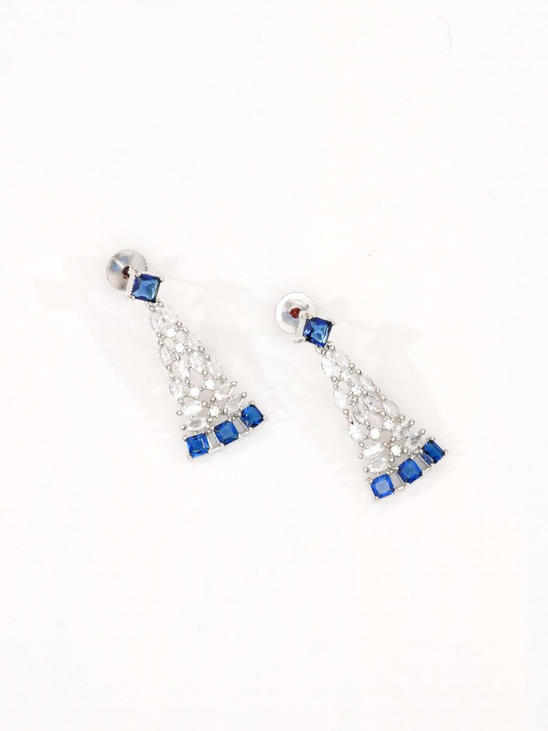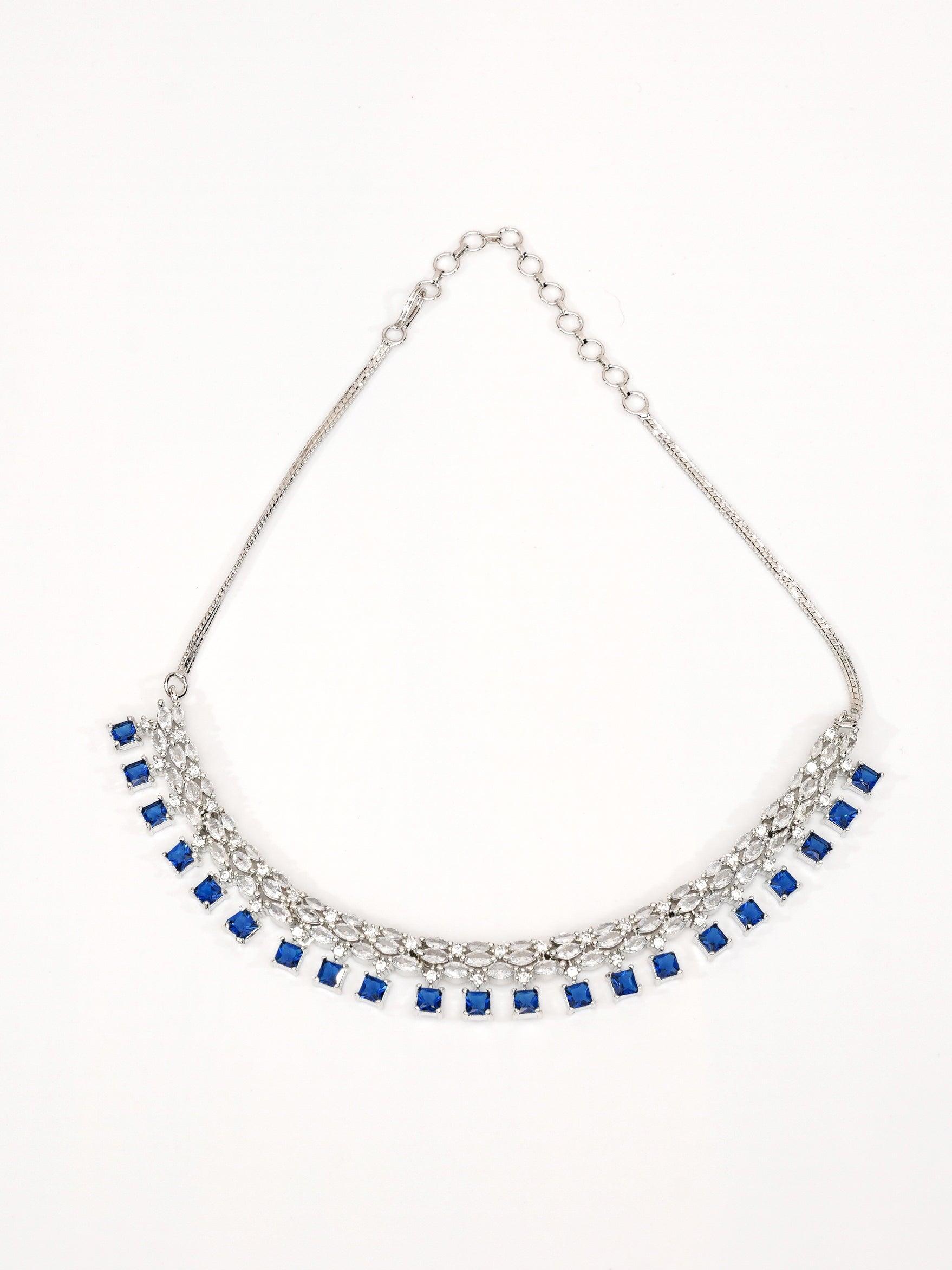 Premium Sayara Collection White Gold Plated Necklace set with best quality blue CZ Ston