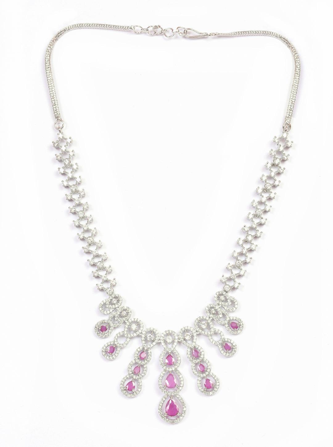 Premium White Gold Plated with sparkling Red White CZ stones Designer Necklace Set 8939N