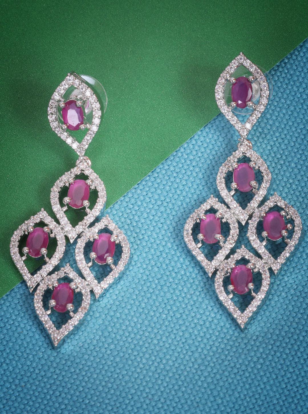 Premium White Gold Plated with sparkling Red White CZ stones Jhumka / Earrings 8926N