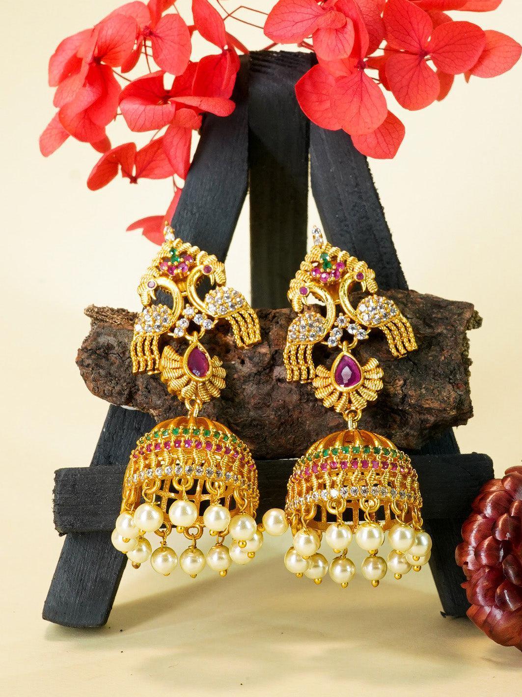 Gold Plated Real Kemp Stone Earrings Jhumka