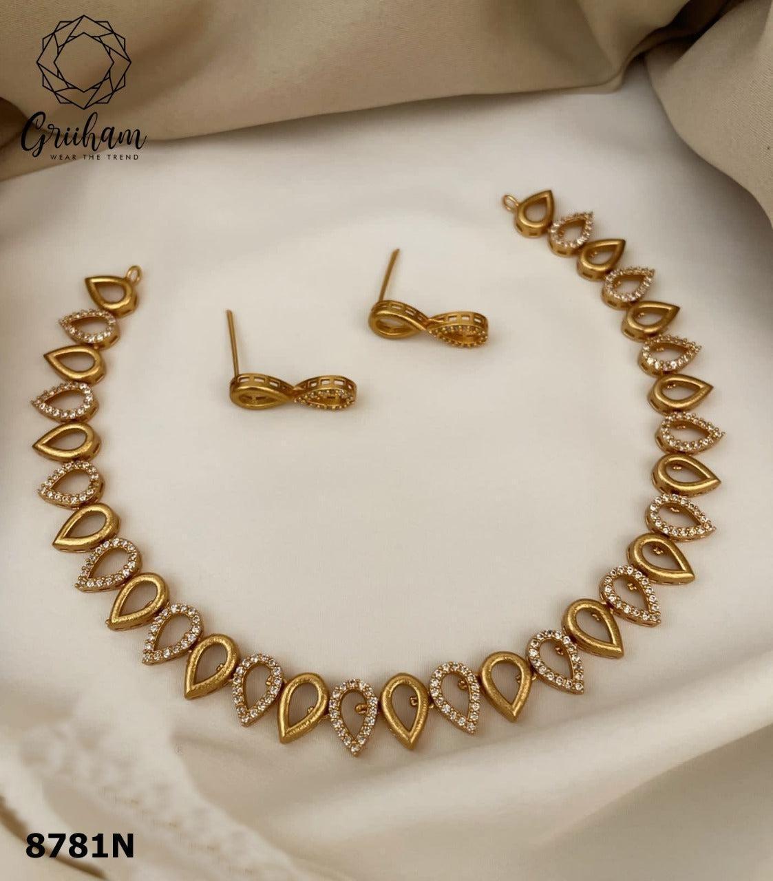 Sayara Collection Modern design White CZ stone Necklace Set 8781N