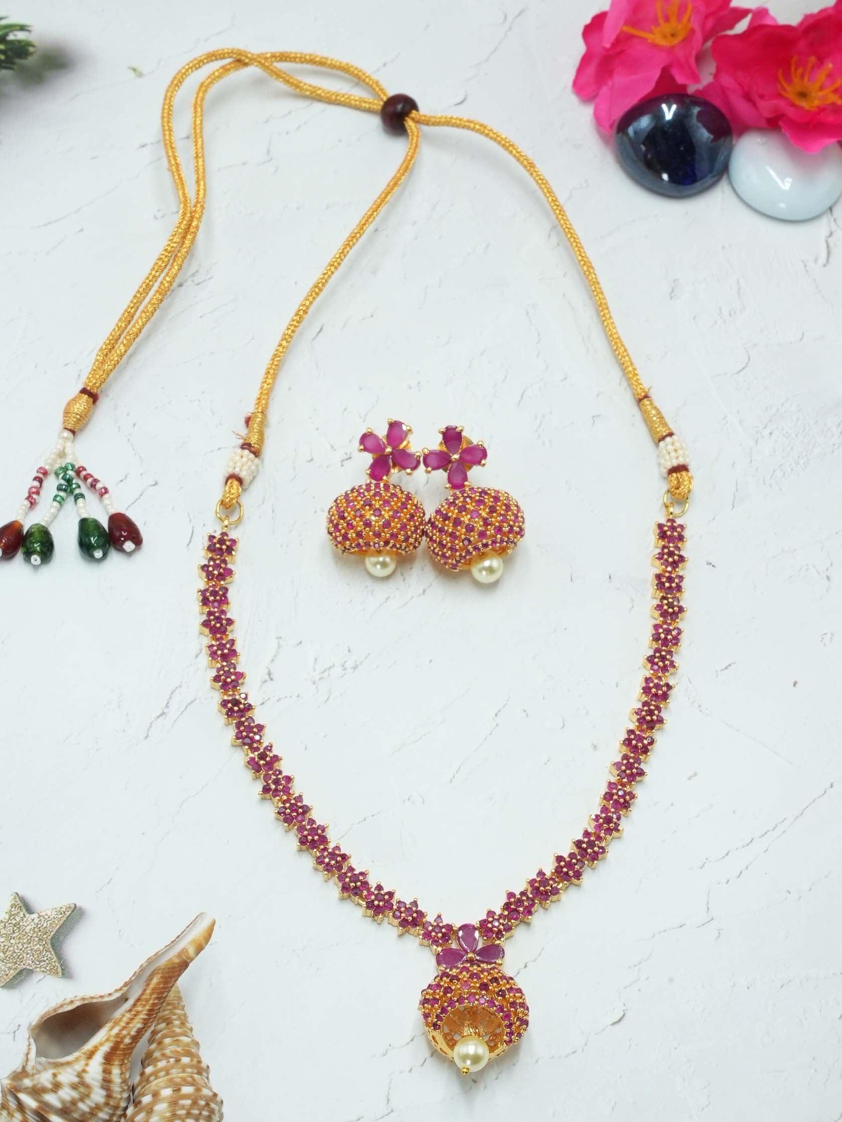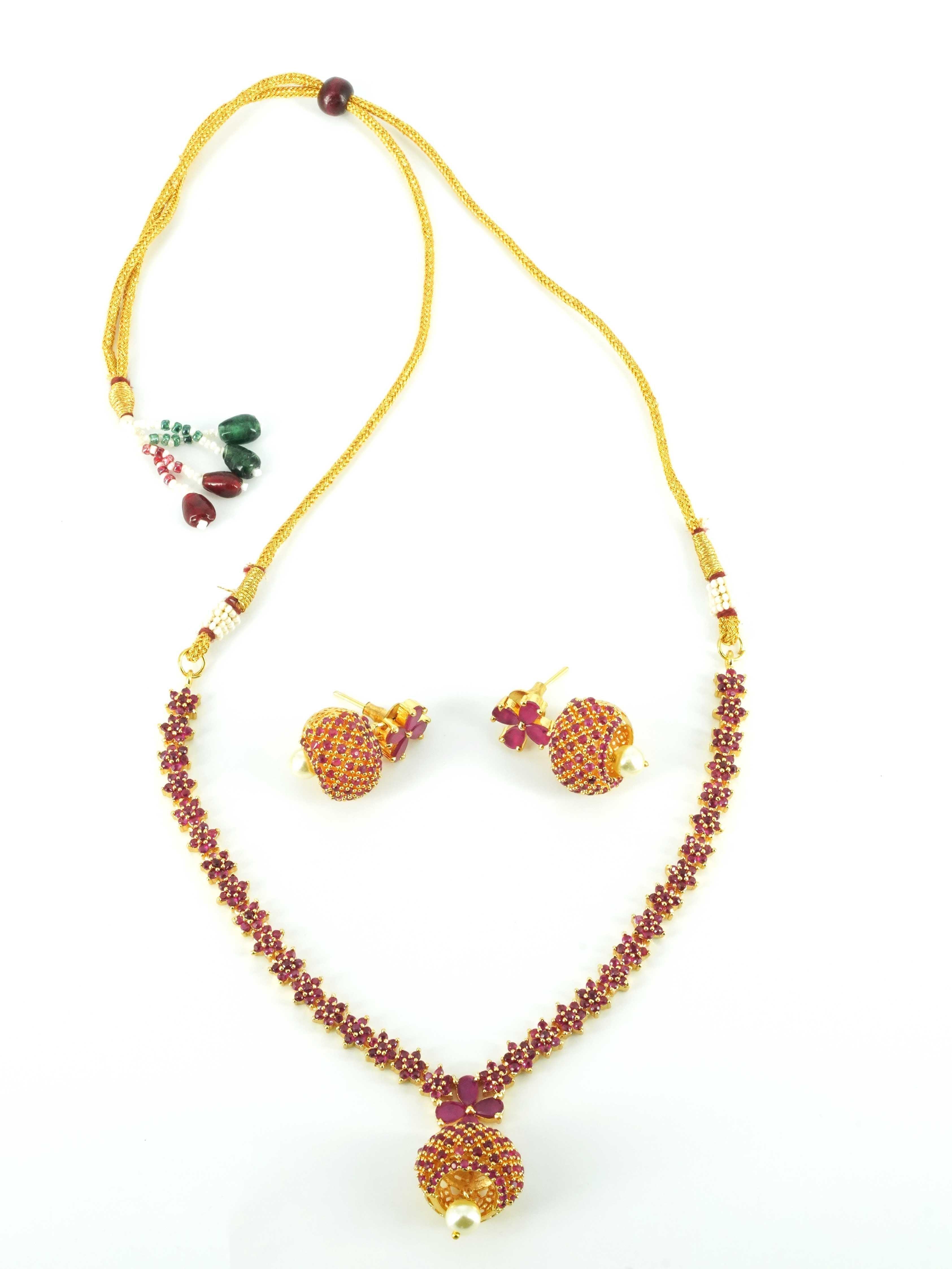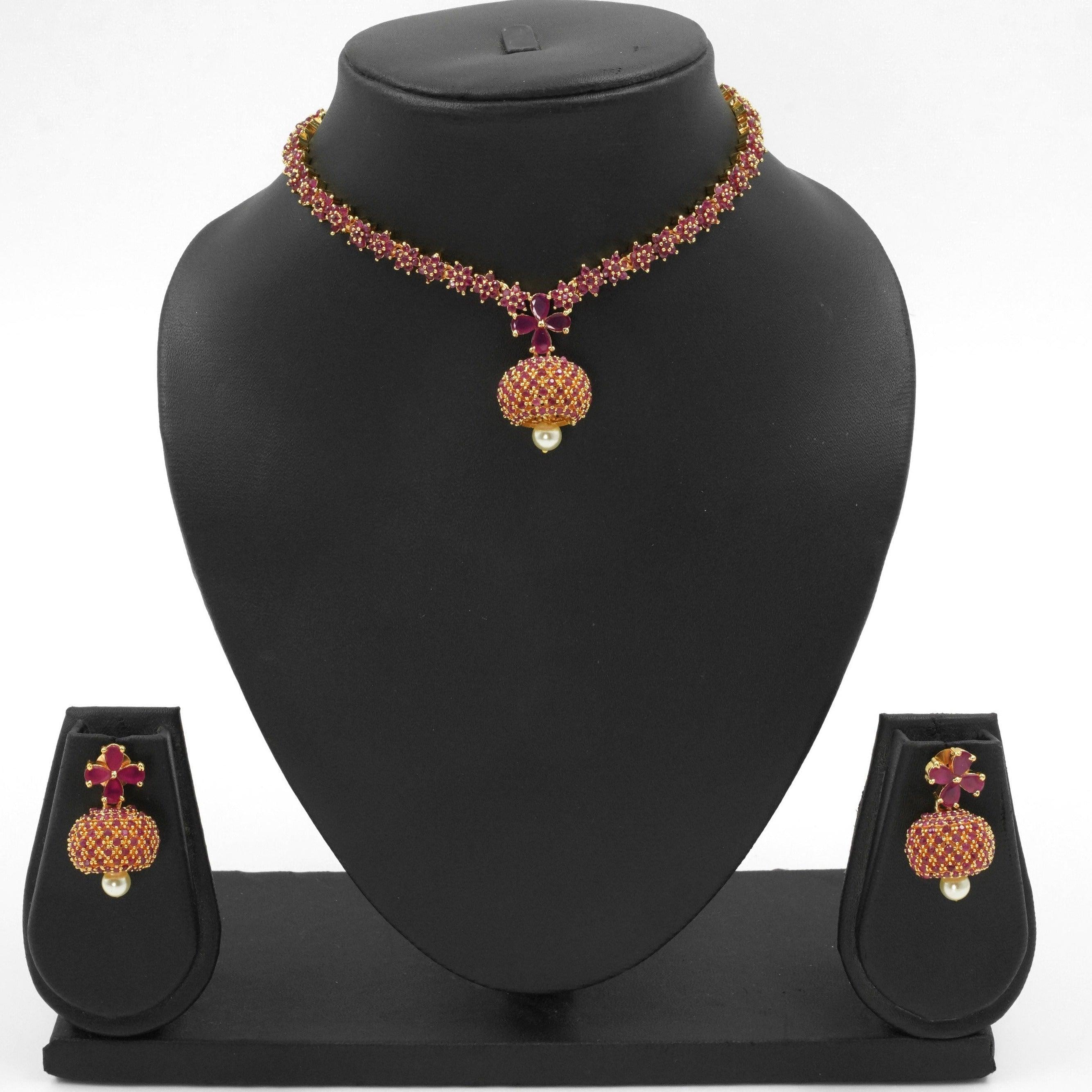 Sayara Collection Red Color stone Party Wear Necklace Set 8777N