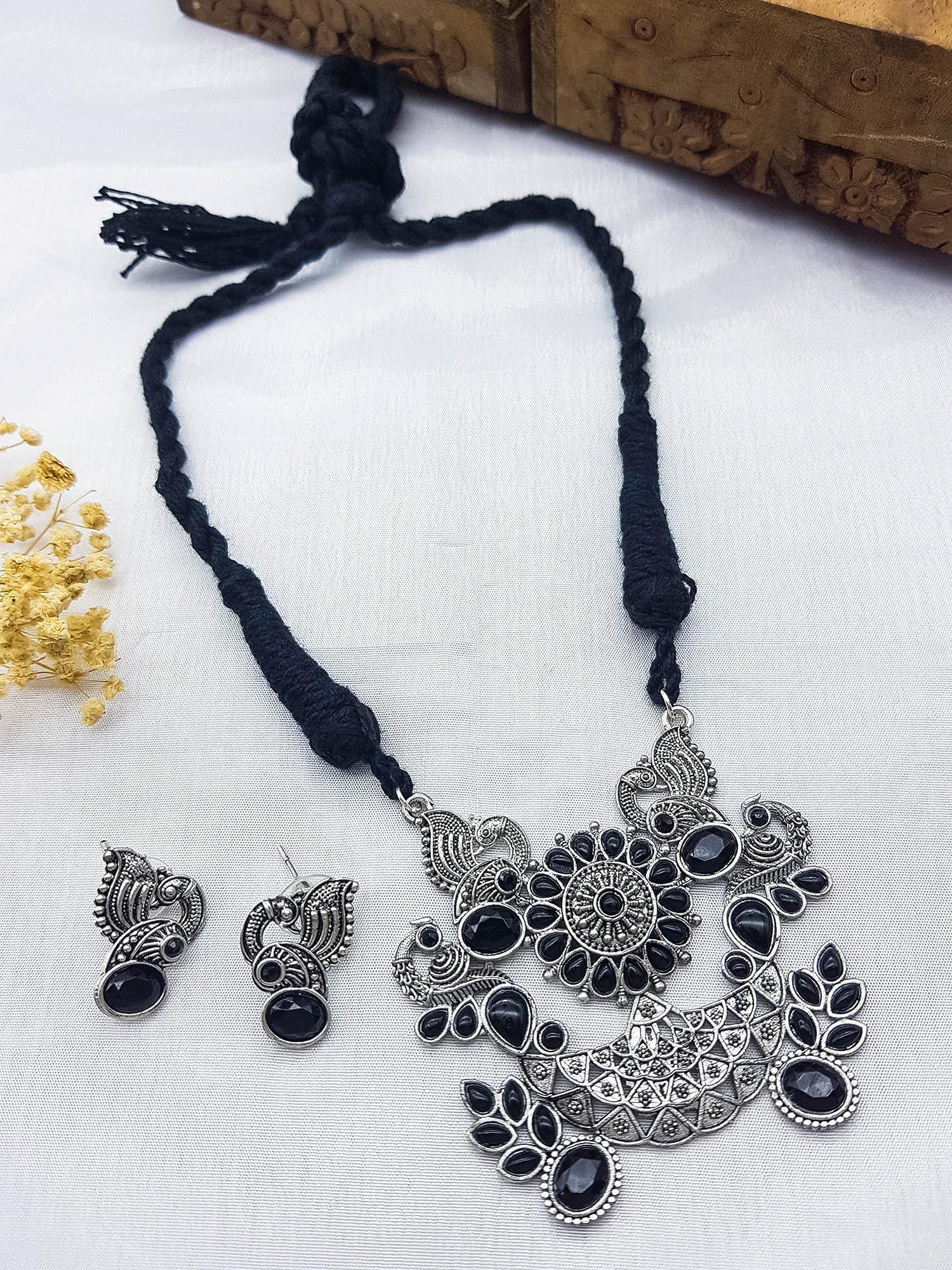 Black bead wati mani pendant Mangalya chain necklace set 18 inches - Griiham