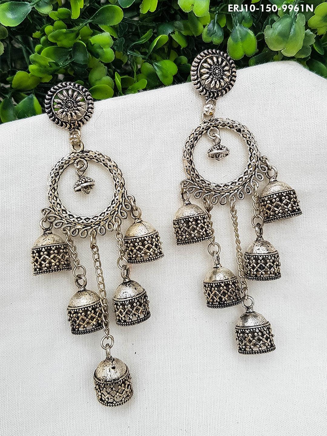 Silver Oxidised Big Jumkas / Earrings 9961N