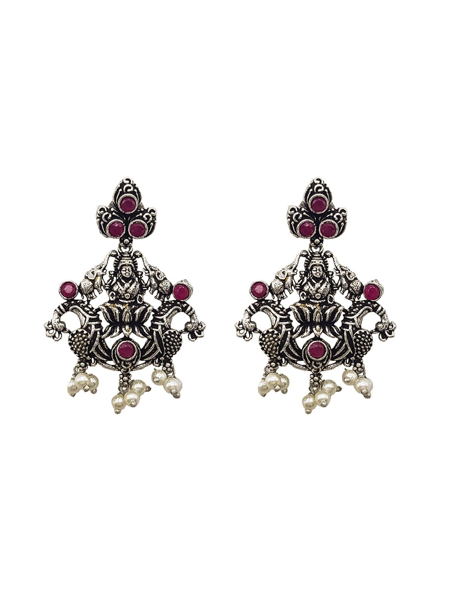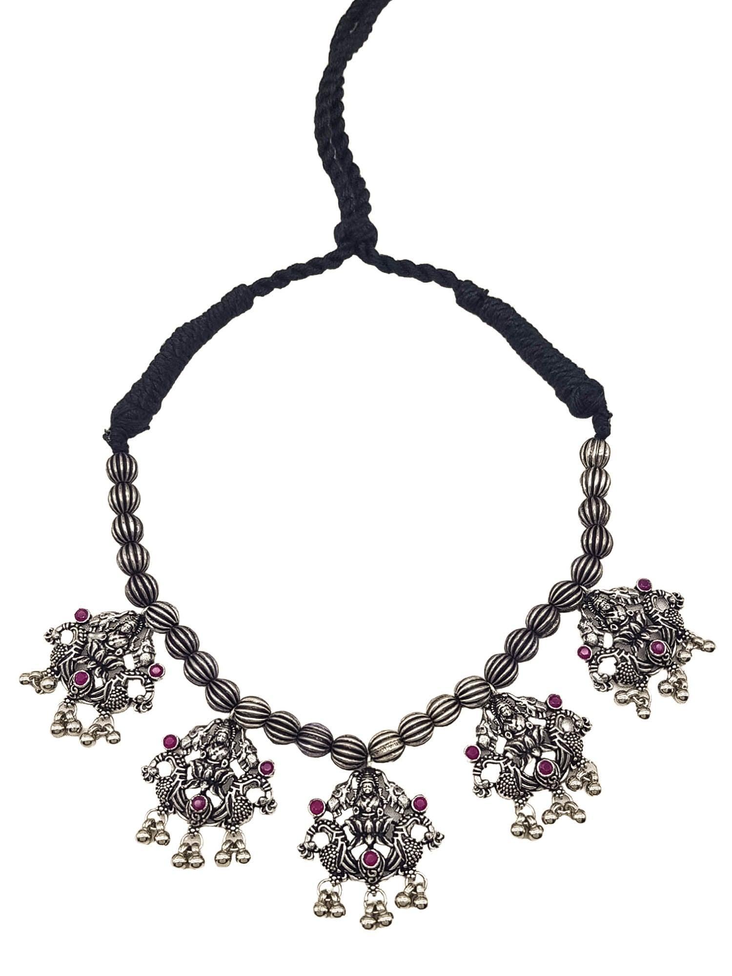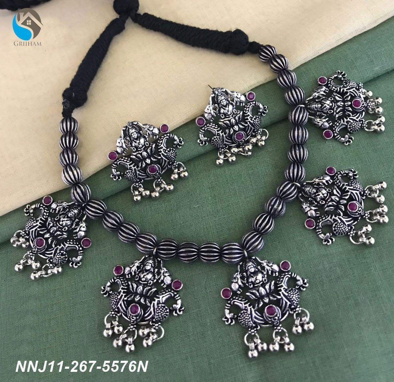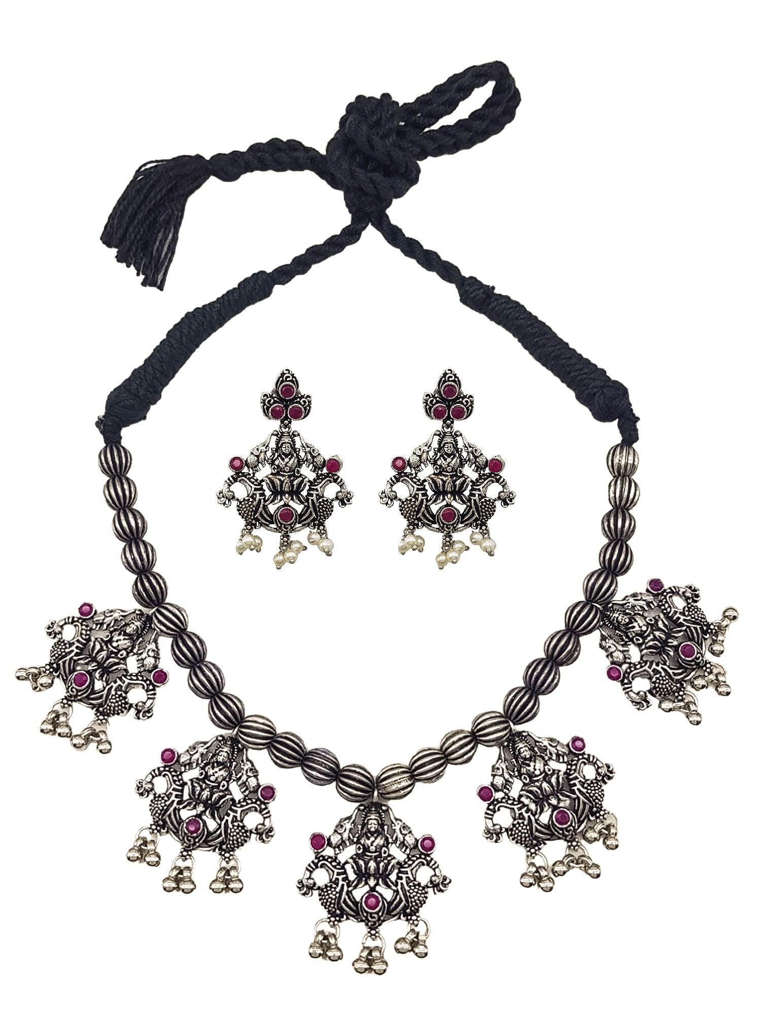 Silver Oxidised necklace set with Red stone