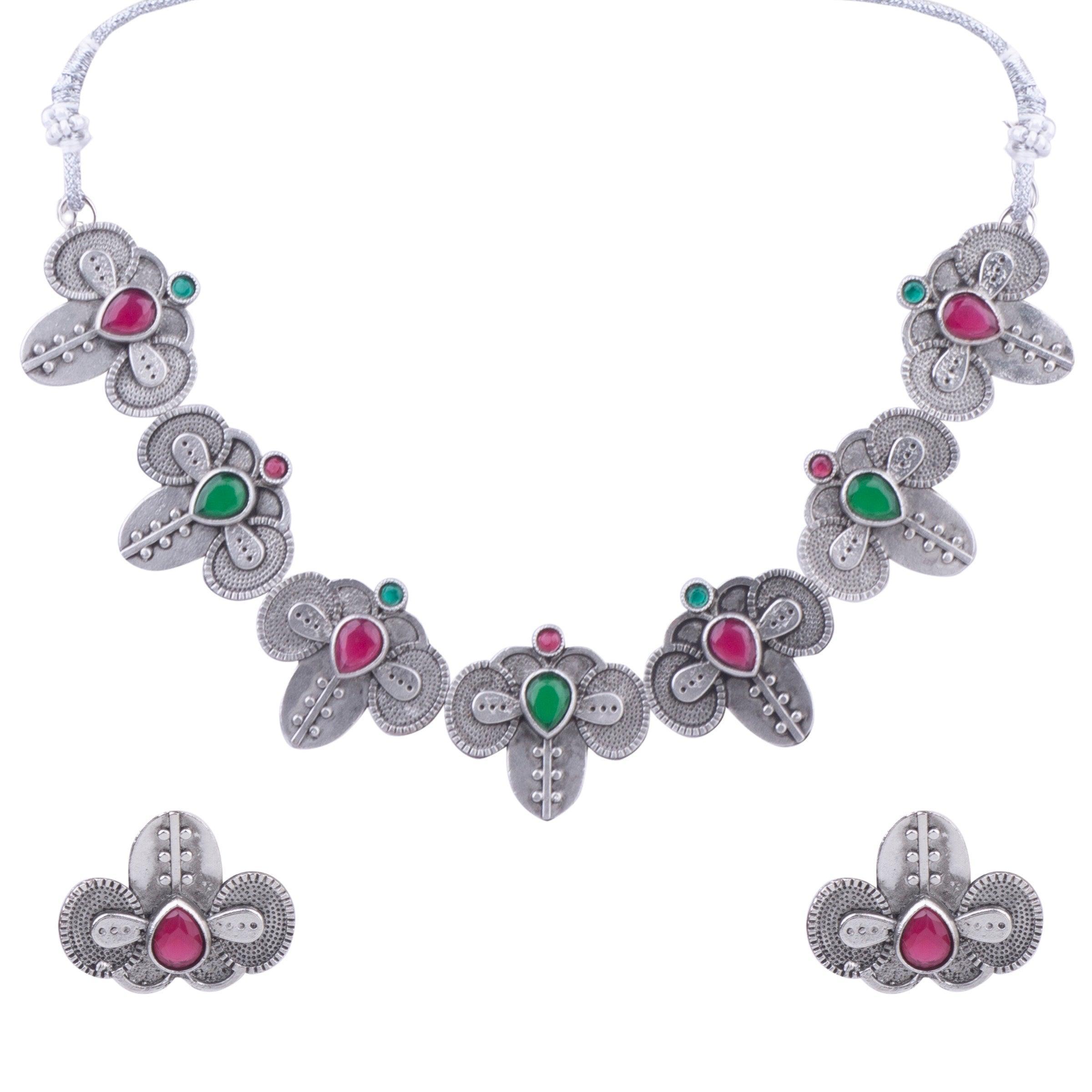 Silver Oxidised Plated Elegant Necklace Set