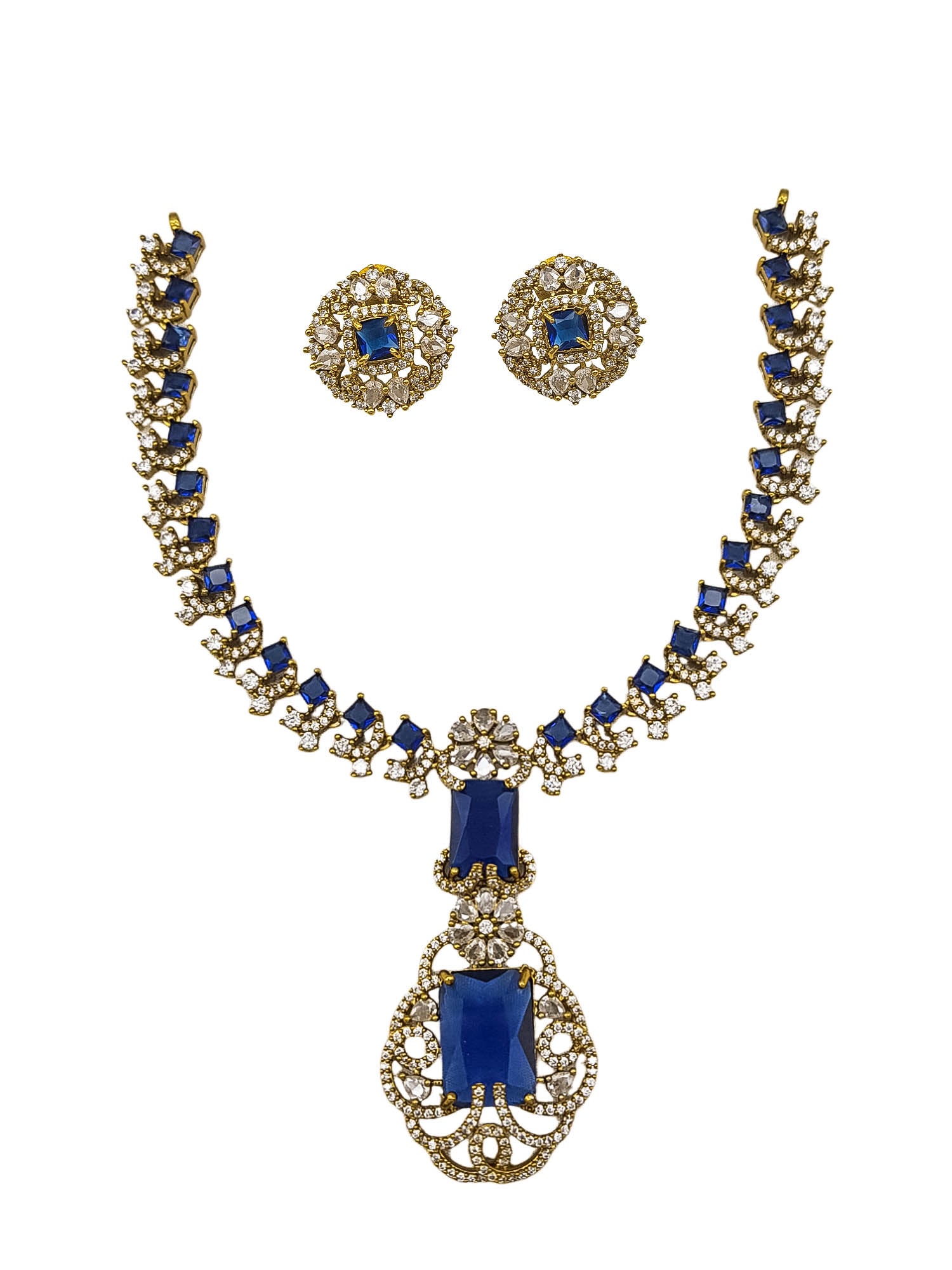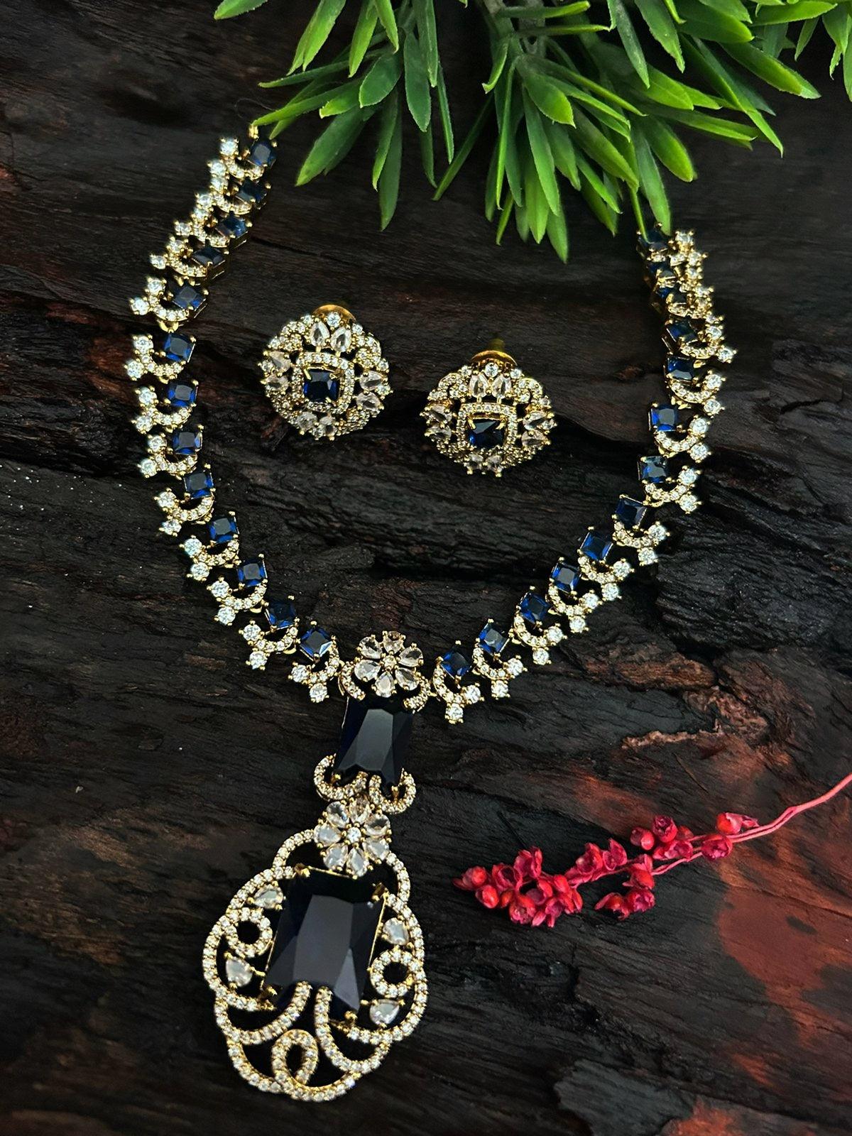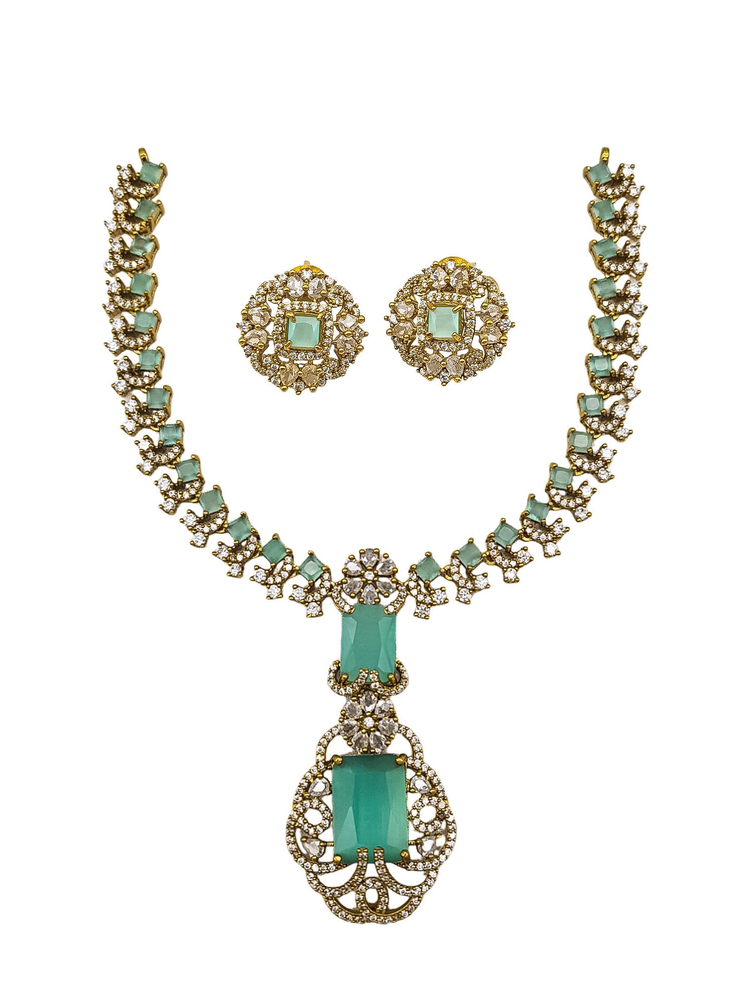 Victorian polish Ambani inspired emerald necklace set chain with Monalisa stone 24020N