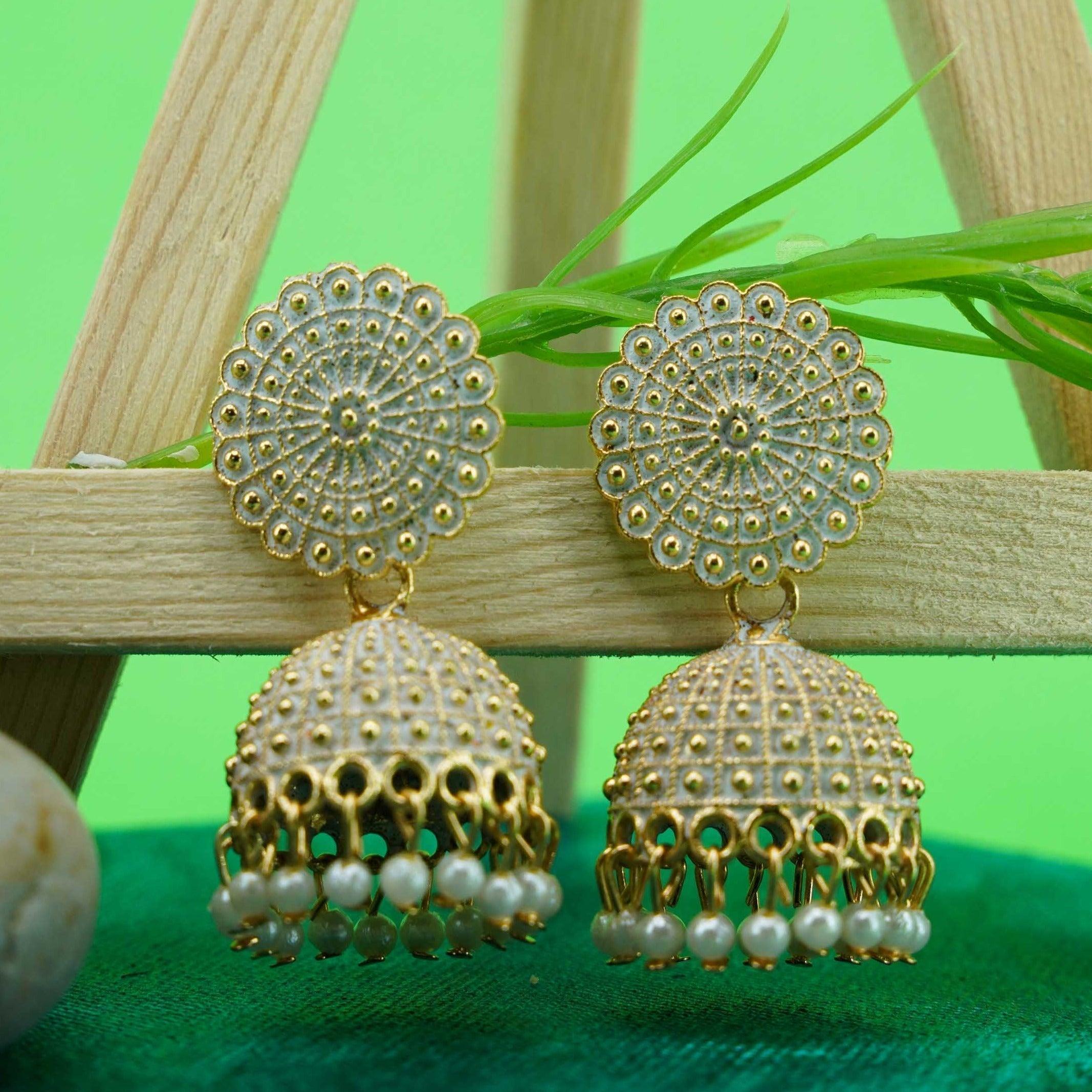 White Gold Plated Cute Jhumkis / Earrings danglers 9769N